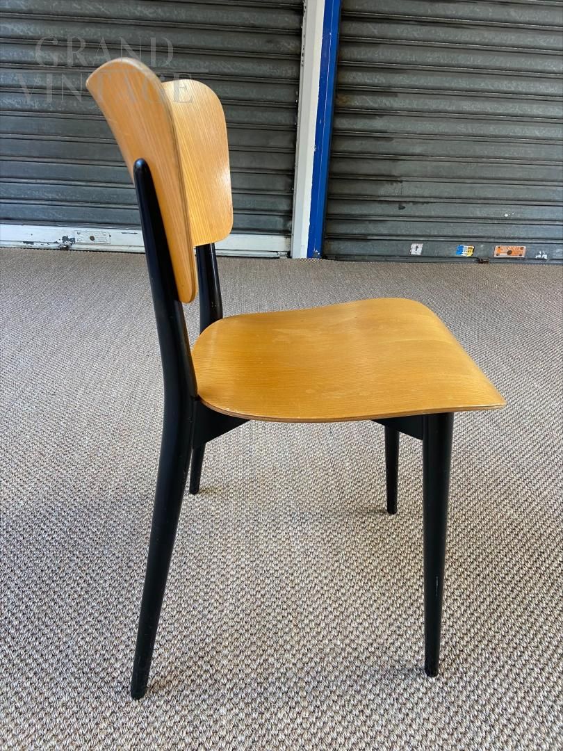 Sedia Kneuzzargenstuhl di Max Bill, iconica sedia con struttura a croce in acciaio laccato nero e seduta e schienale in legno, edition Möbelwerke Horgan Glarus, circa 1951.
