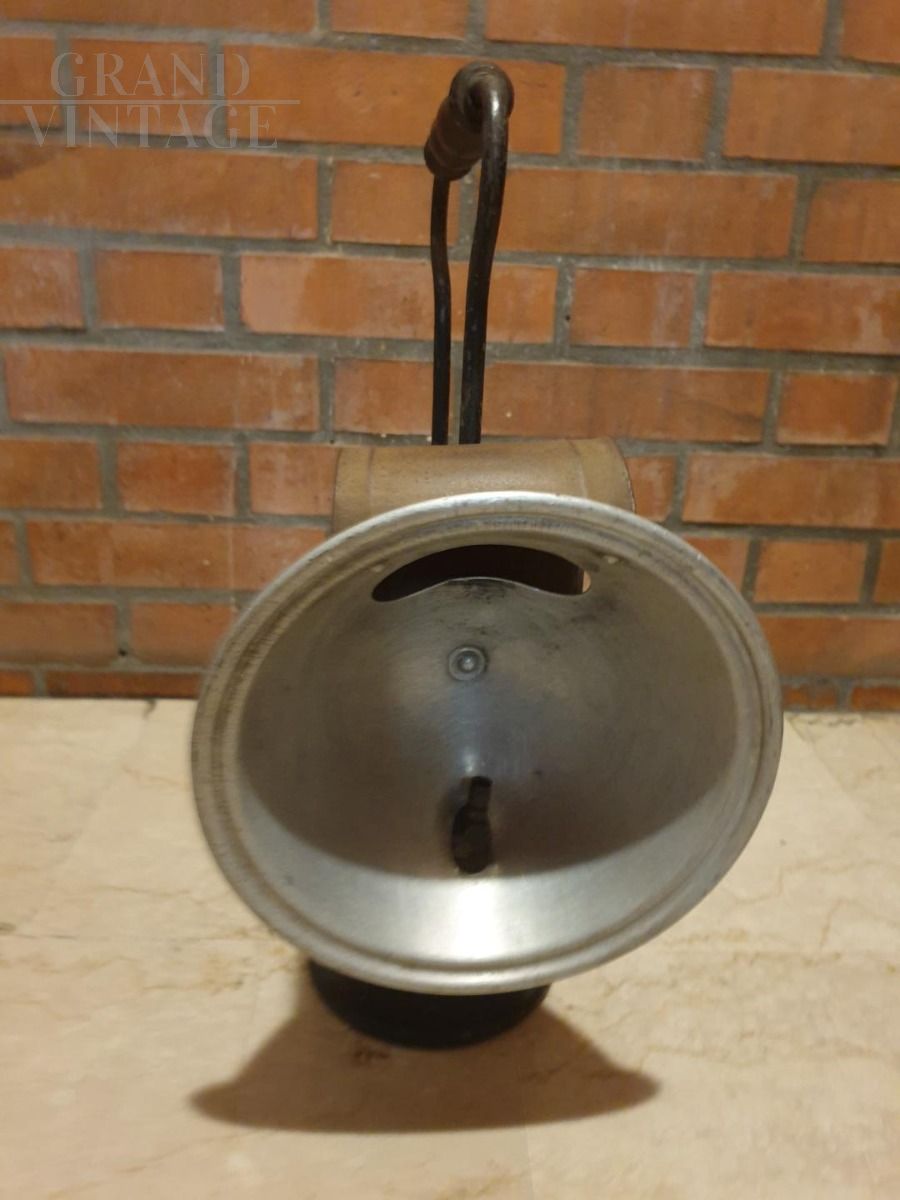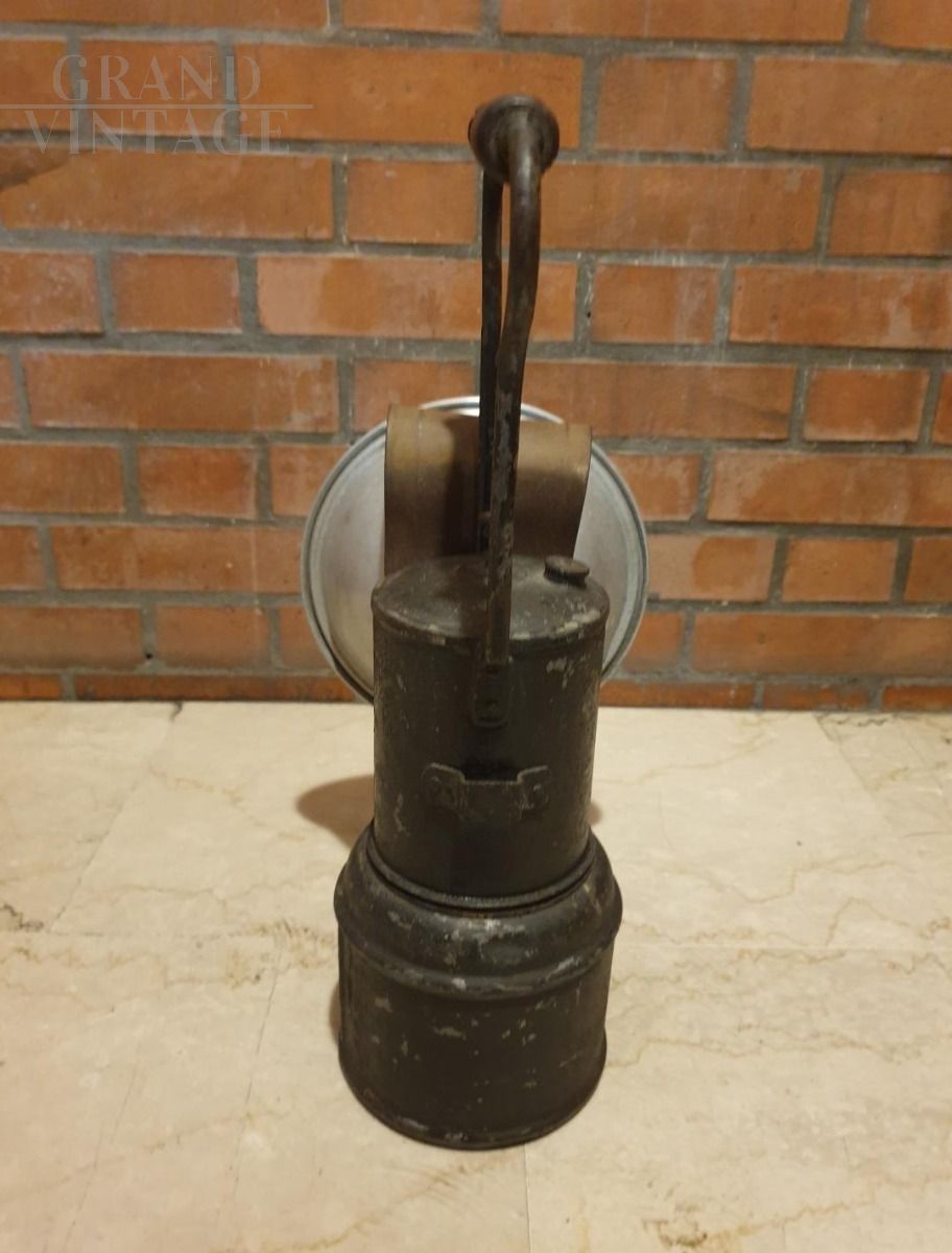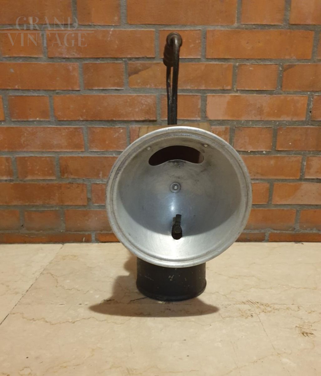 Lampada a carburo per usi diversi, provvista di maniglia per il trasporto con impugnatura di legno. Veniva utilizzata sia per segnalazioni che per escursioni in particolare per la raccolta delle lumache, ma anche per la sorveglianza di argini. Si tratta di lampade prodotte nella zona di Ferrara, dagli anni '60 agli anni '80.