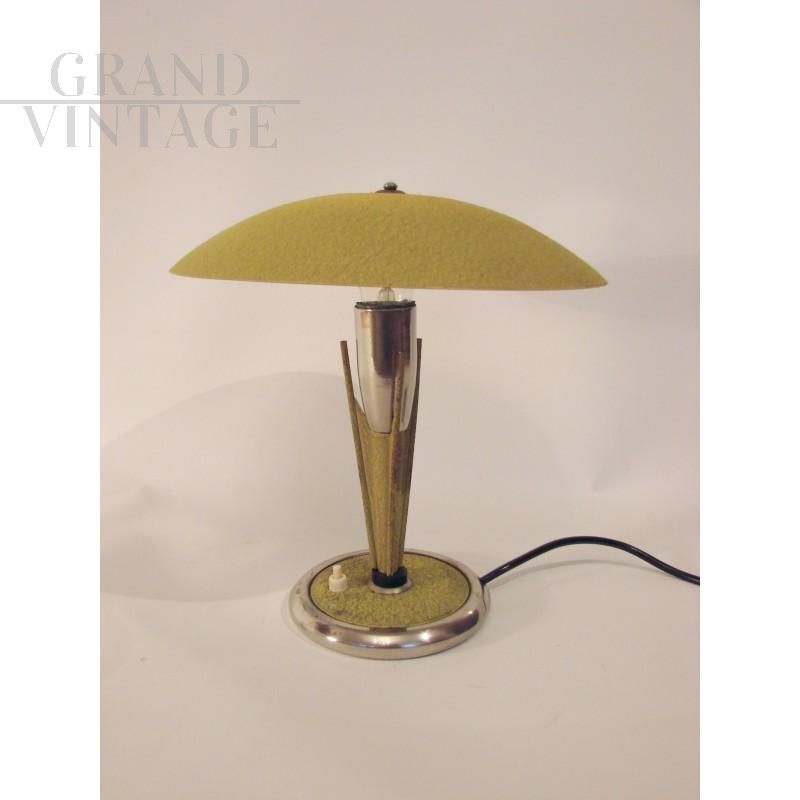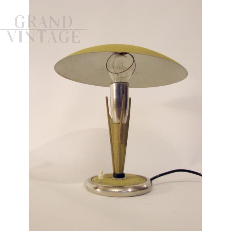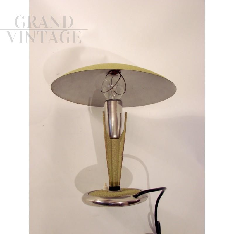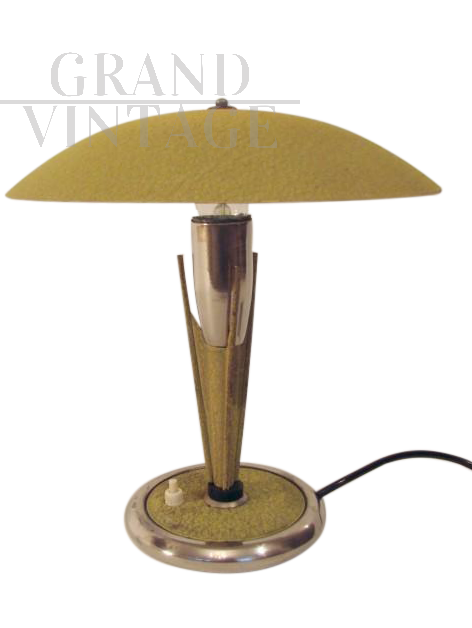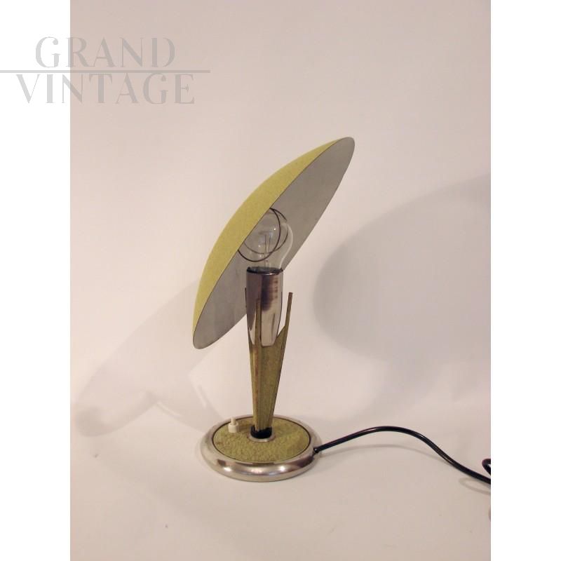 Lampada a fungo polacca, anni '60, con paralume direzionabile, realizzata in metallo ricoperto di vernice dalla texture interessante. Richiede lampadina E27.