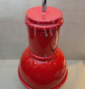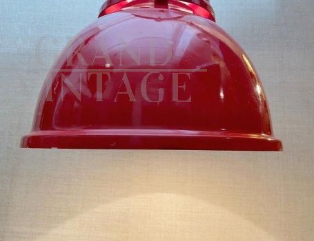 Lampada a sospensione modello Lampara Grande in metallo laccato rosso, produzione Fontana Arte, presente negli archivi Fontana Arte del 1965. Ricablata.
