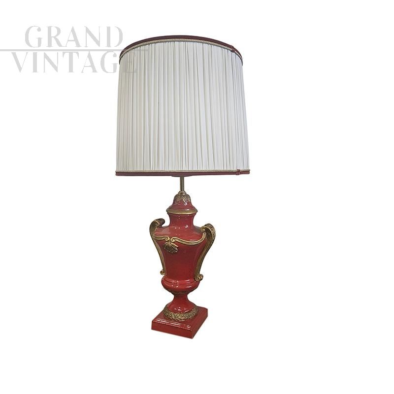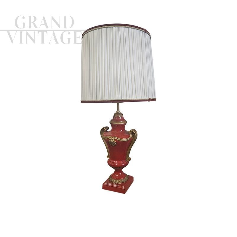 Lampada abat-jour in porcellana smaltata rossa e oro