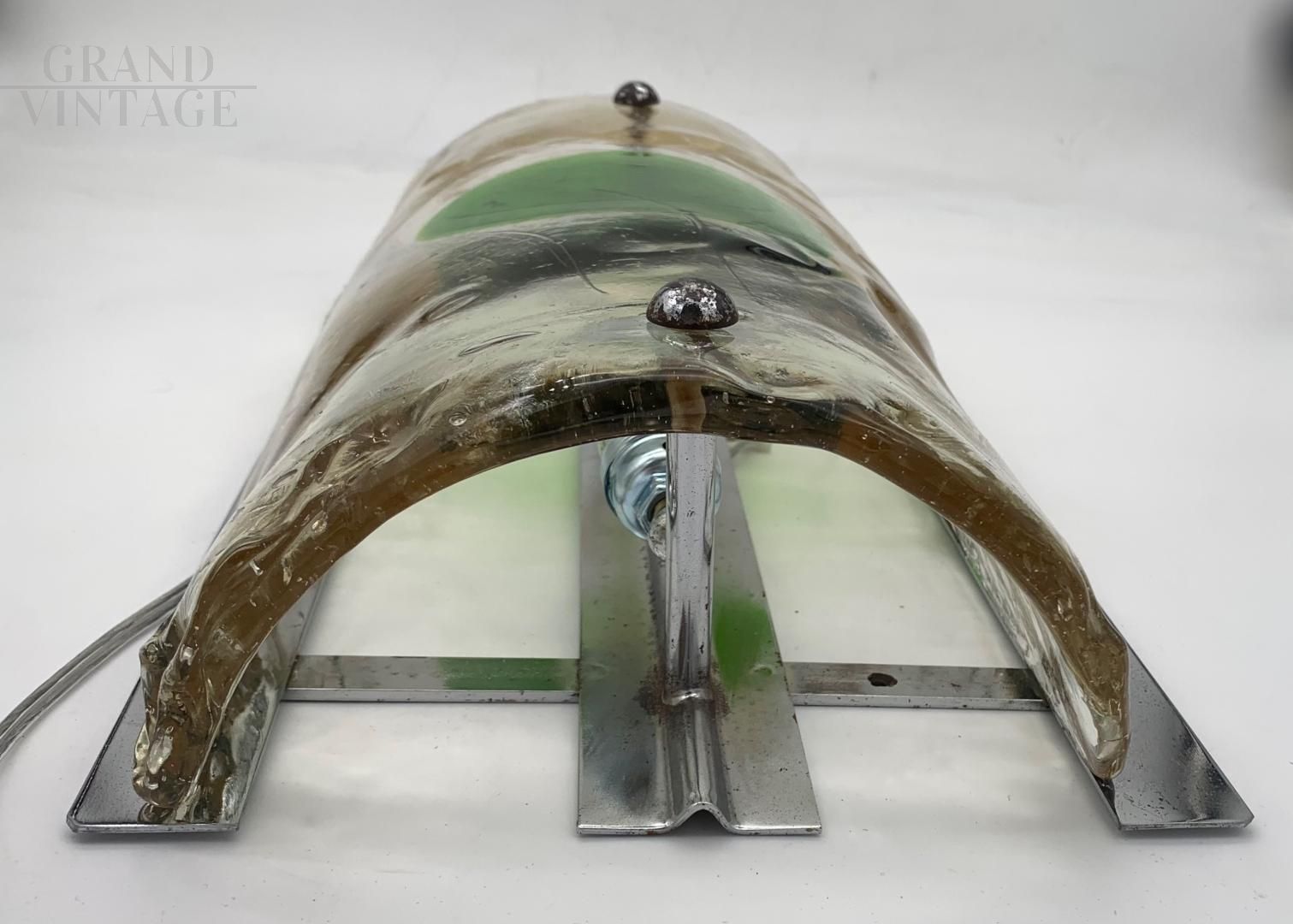 Lampada da parete applique attr. Mazzega in vetro di Murano con decoro verde