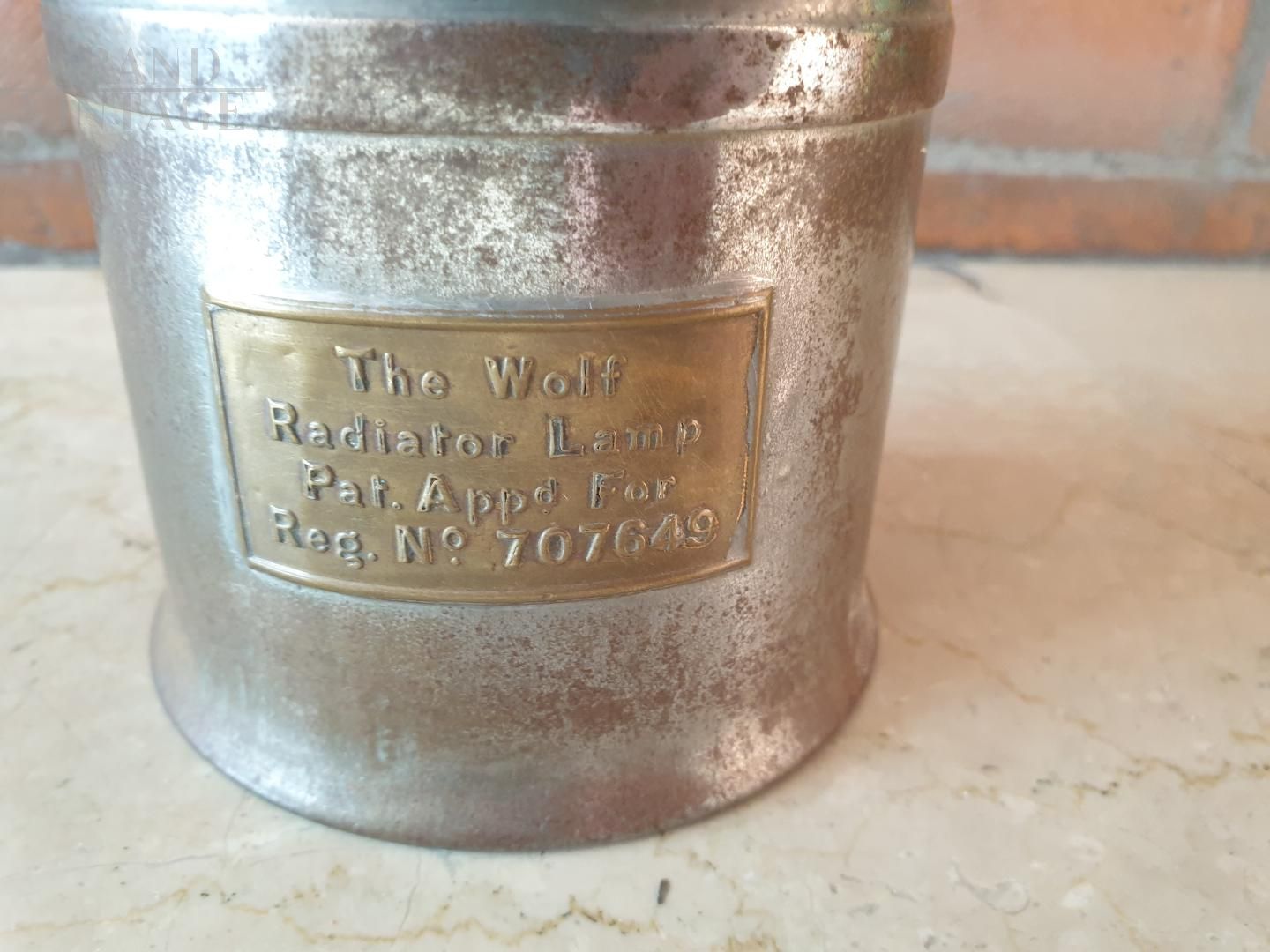 La lampada veniva messa sotto il radiatore dell'auto per assicurarsi che non gelasse in inverno, in un periodo antecedente all'esistenza dell'antigelo. La lampada è prodotta da " The Wolf Safety Lamp Co Ltd" a Sheffield ( Inghilterra) nel 1925. Il corpo è in acciaio zincato stampato, la base funge da serbatoio del carburante, che può essere benzina o nafta scozzese. Tappo a vite in ottone. L'accendino è montato in prossimità del tubo a doppio stoppino ed è azionato tramite maniglia a molla. Questa controlla il movimento di un perno, che può essere spinto verso l'alto in modo che la scintilla accenda subito lo stoppino quando si gira la maniglia. La regolazione dello stoppino è controllata dalla base. Il camino si avvita al contenitore. La lampada è dotata di una staffa e un gancio.