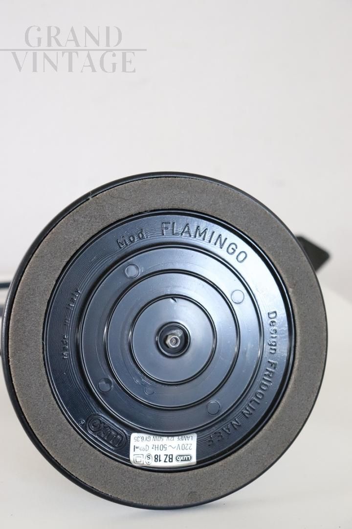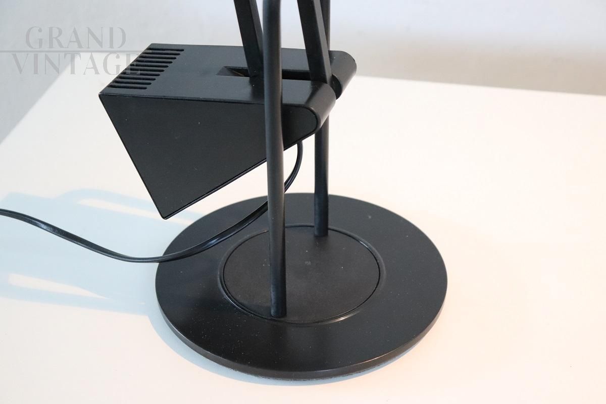 La lampada da tavolo o da scrivania "Flamingo" di Fridolin Naef per Luxo, prodotta negli anni '80, rappresenta un esempio eccezionale del design italiano postmoderno, caratterizzato da un equilibrio perfetto tra funzionalità e estetica. Realizzata in metallo nero, questa lampada prende ispirazione dalla silhouette elegante del fenicottero, con articolazioni sofisticate e un grande contrappeso che permettono una straordinaria flessibilità e la possibilità di configurare diverse pose. La presenza del marchio originale sotto la base conferma l'autenticità del pezzo, rendendolo altamente desiderabile per collezionisti e appassionati di design. Prezzo trattabile.