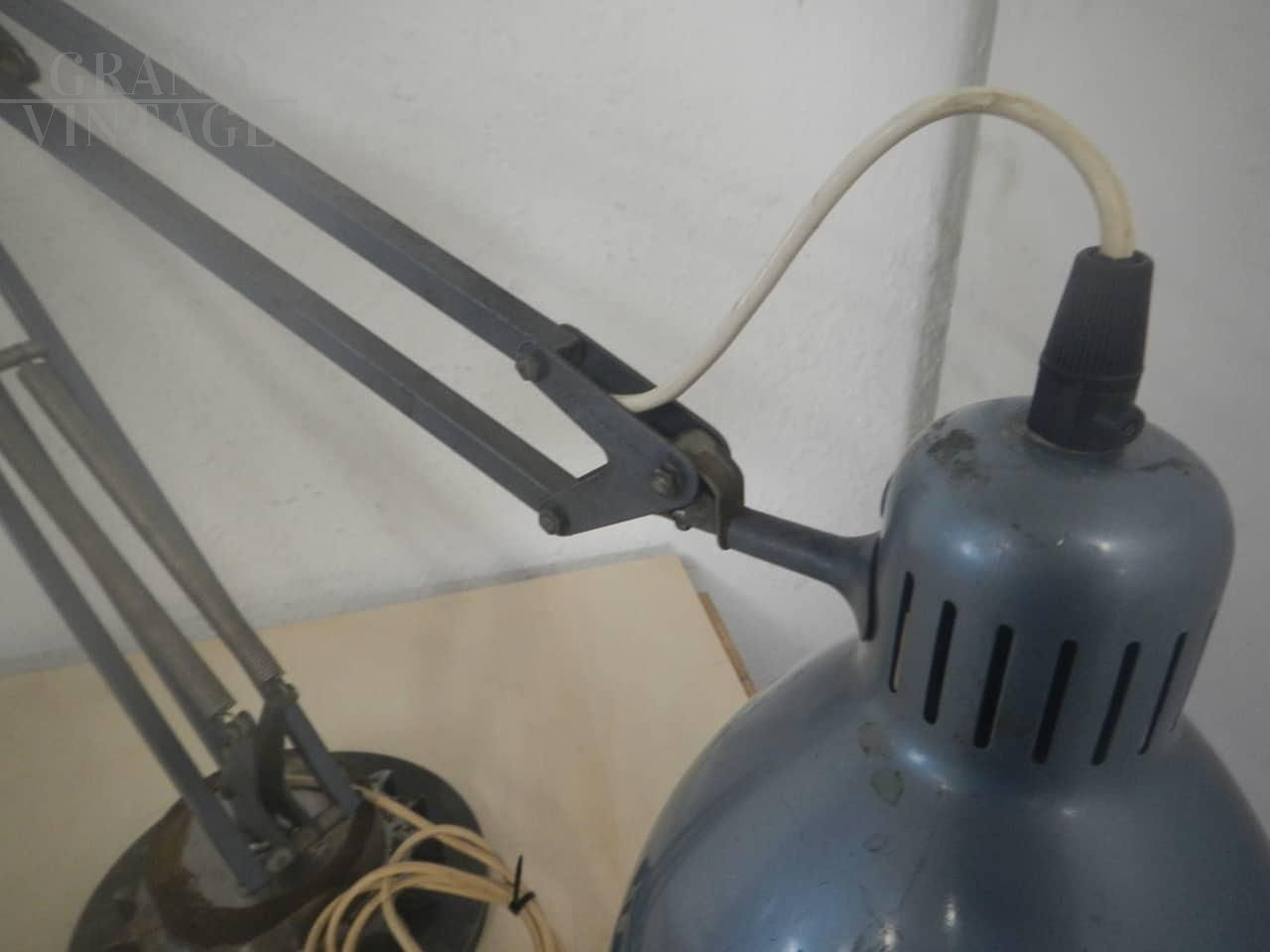 Lampada da scrivania industriale in metallo azzurro, anni '60