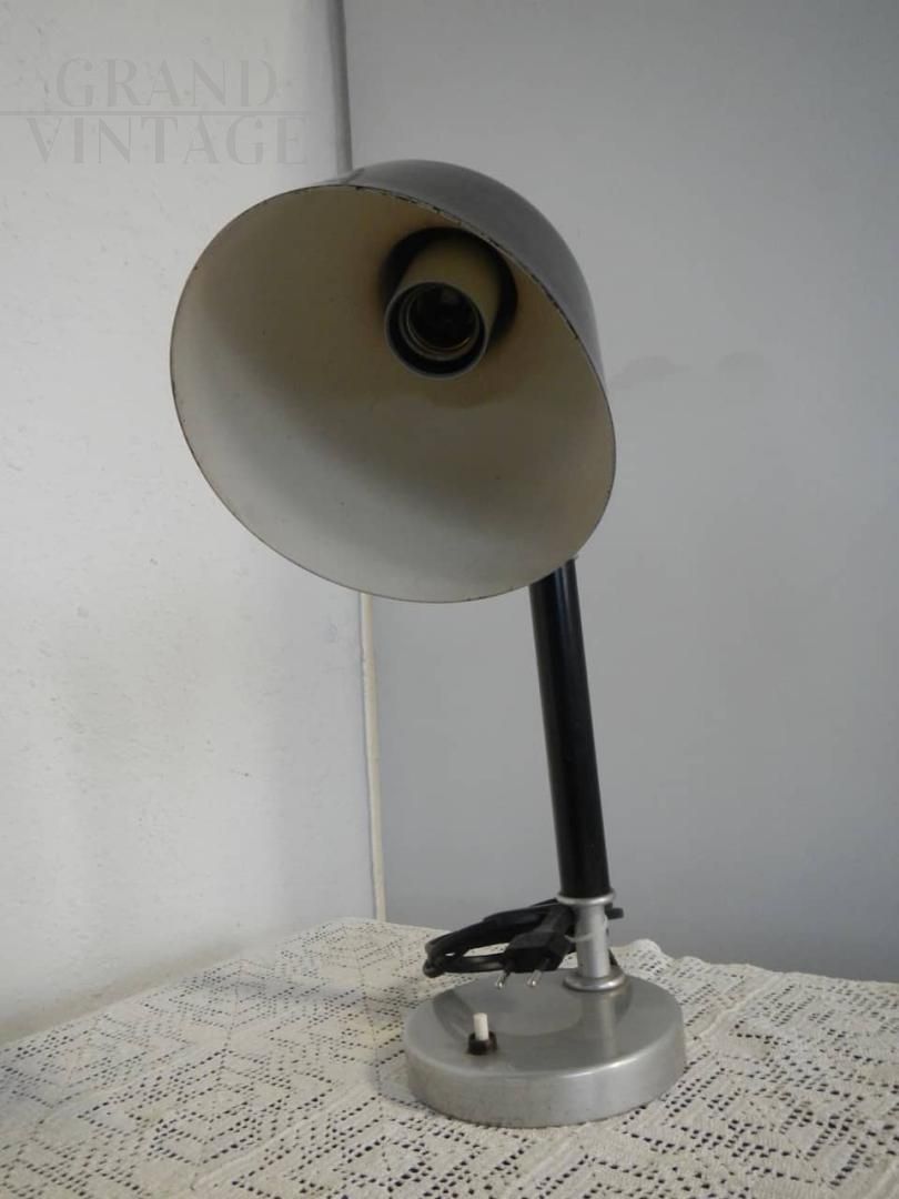 Lampada da tavolo o da ufficio vintage Greco in metallo e ottone in colore marrone caffè, direzionabile e regolabile con una vite fino cm 38 in altezza. Funzionante, ricablata, presenta una leggera usura dovuta all’età e all’utilizzo. Viene fornita senza lampadina.