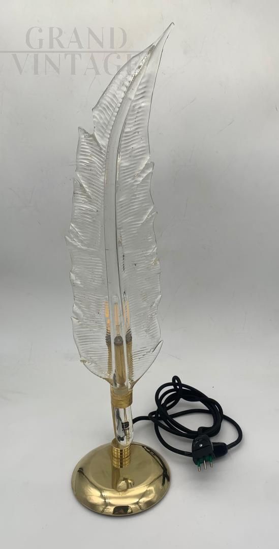 Lampada da tavolo a piuma Effetre in vetro di Murano e ottone