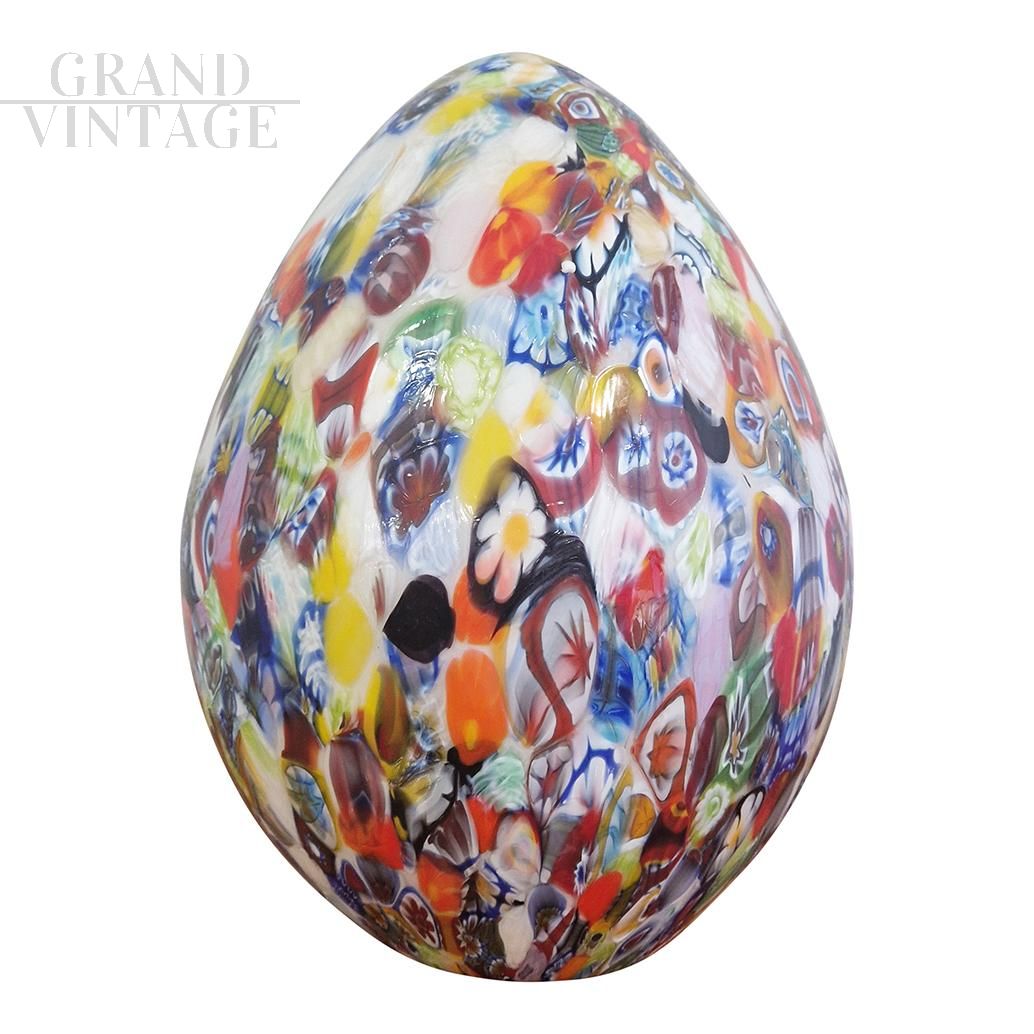 Meravigliosa lampada da tavolo Grand di La Murrina in vetro di Murano a forma di uovo in vetro soffiato a mano con tipica lavorazione a murrine Millefiori dai colori vivaci e accesi.