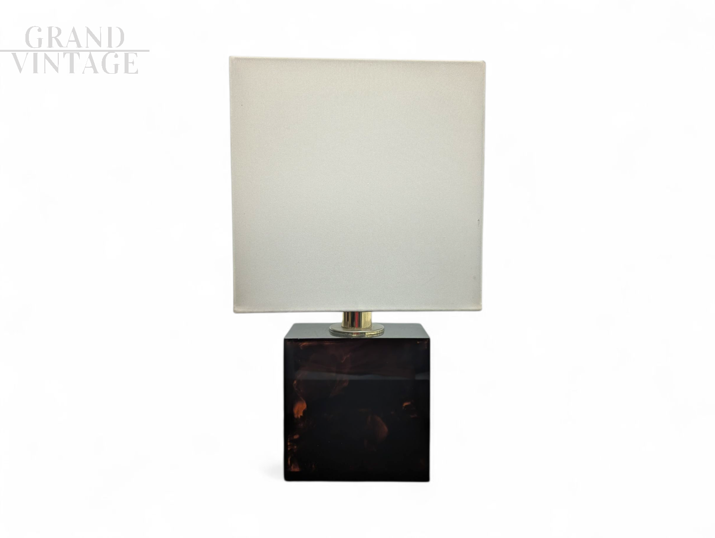 Lampada da tavolo abat-jour con base in resina, anni '80