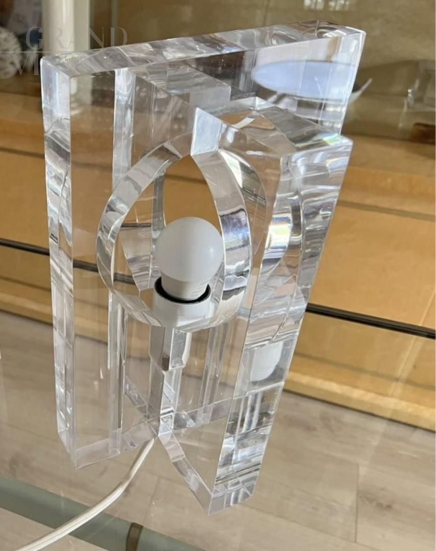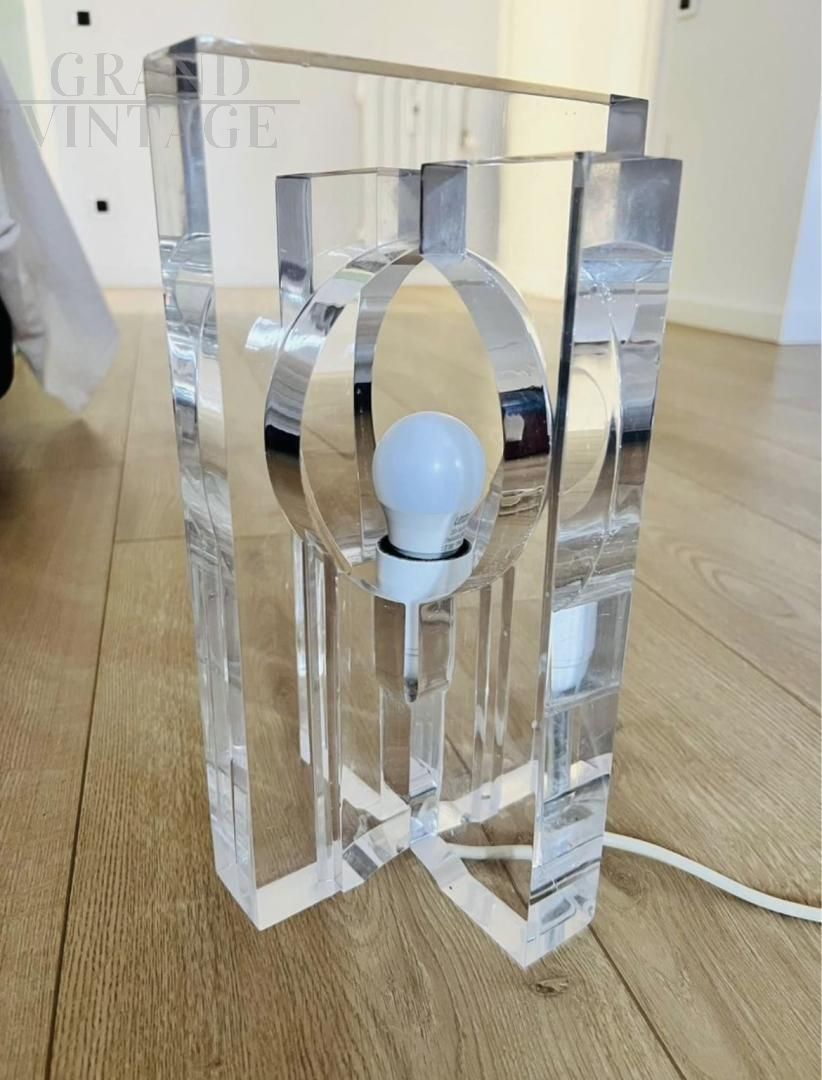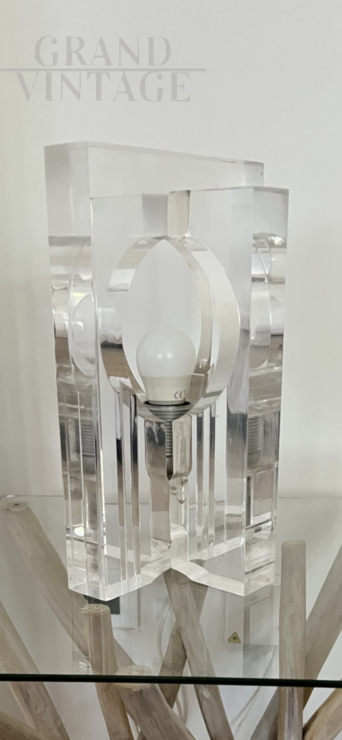 Magnifica lampada da tavolo scultura design di Sandro Petti per Maison Jansen in plexiglass trasparente, una vera opera d'arte.