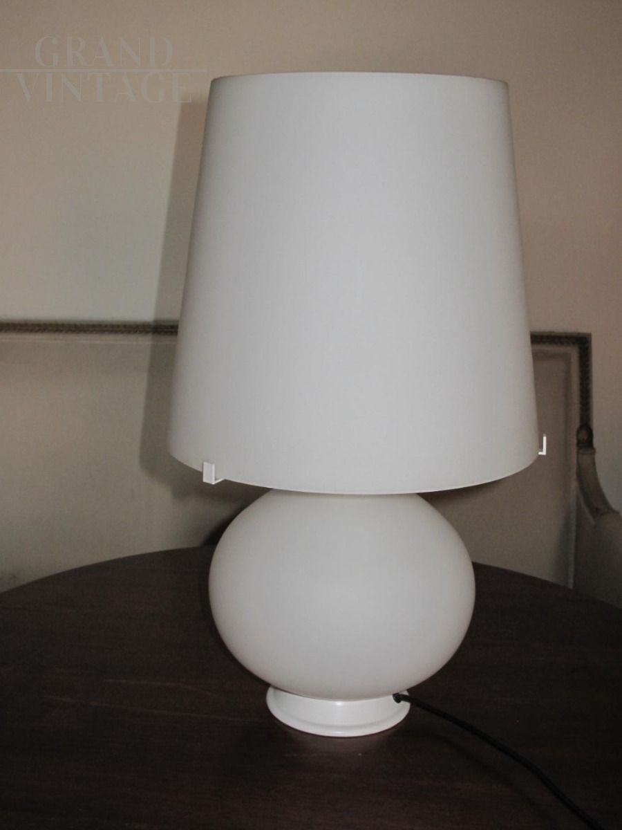 Lampada da tavolo a fungo di Max Ingrand per Fontana Arte in vetro bianco opalino su struttura in ferro laccato bianco.