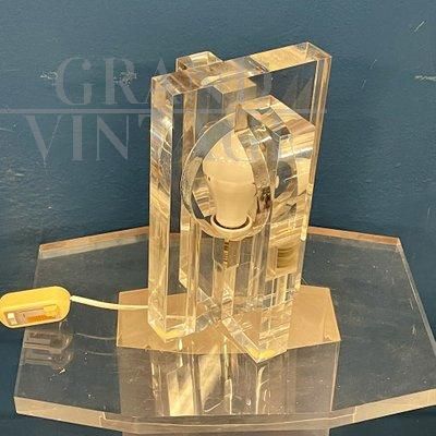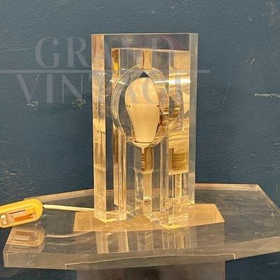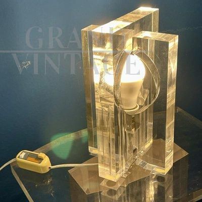 Lampada da tavolo di Sandro Petti per Maison Jansen anni '70 in plexiglass Lucite, composta da elementi di forte spessore ad incastro che, scorrendo tra loro, danno accesso ad una grossa lampadina centrale.