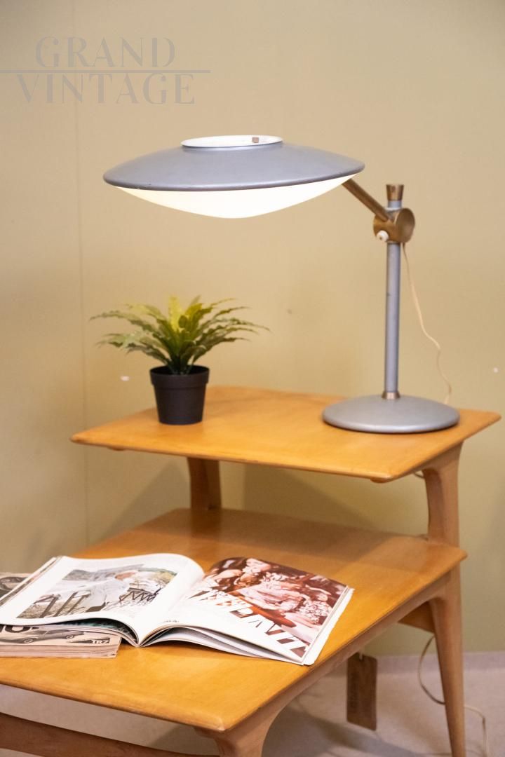 Lampada da tavolo americana Flying Saucer di Dazor dal design futuristico space age con la tipica forma a UFO, perfetta per chi cerca un pezzo di arredo unico.