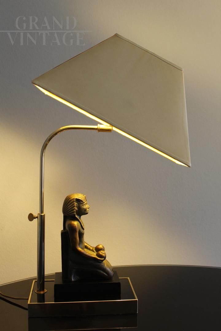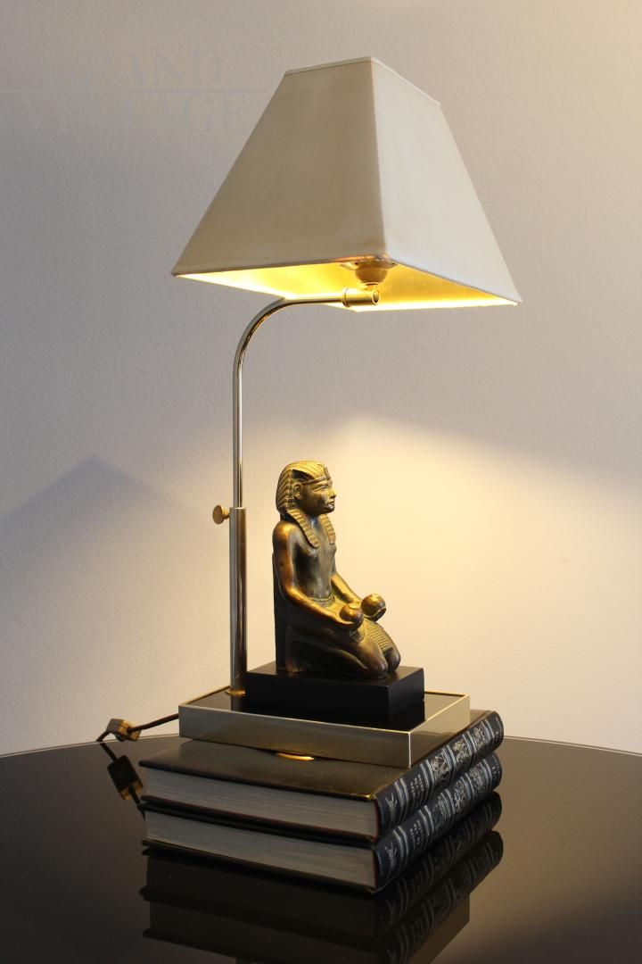 Lampada da tavolo Hollywood Regency Pharaoh degli anni '70