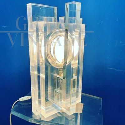 Lampada da tavolo in plexiglass di Sandro Petti per Maison Jansen, anni '70