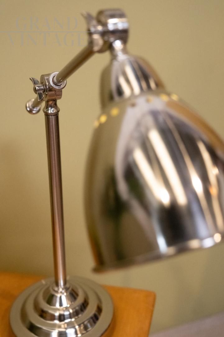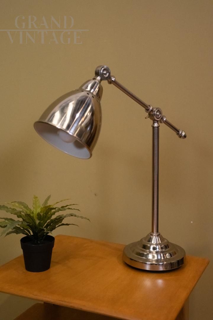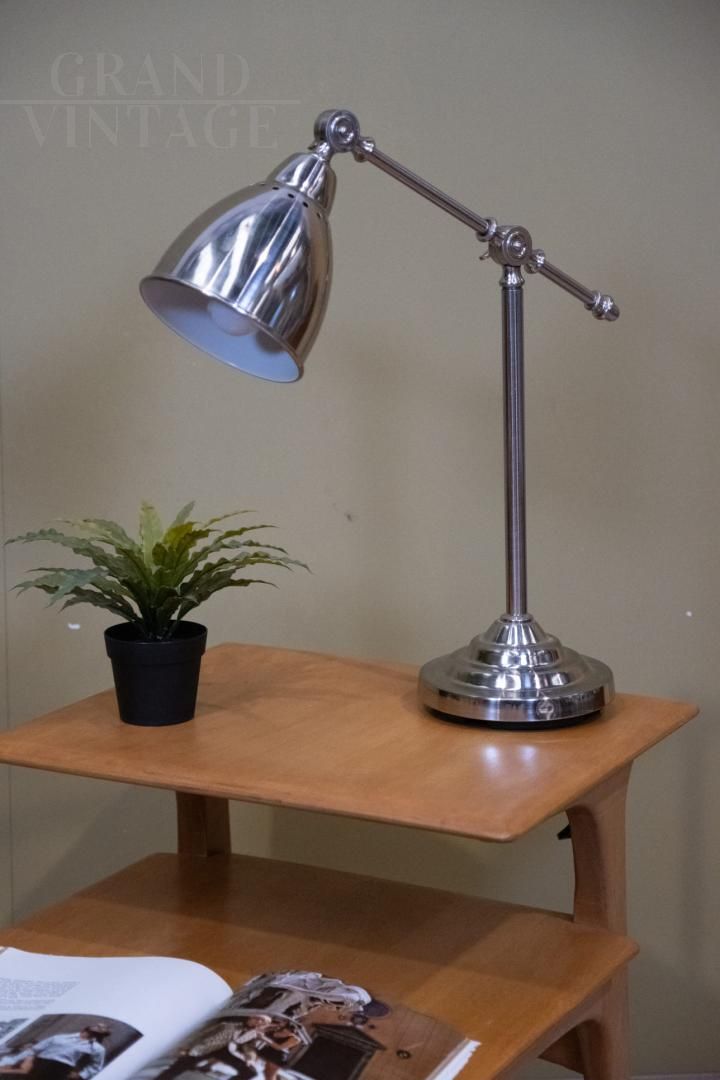 Estetica tecnica e riflessi d’acciaio per questa lampada da tavolo industriale cromata, pensata per aggiungere carattere e luce direzionale a ogni ambiente. Perfetta per set dallo stile urban, officine ricostruite o scenografie metropolitane, è un dettaglio funzionale e scenografico che richiama il mondo del lavoro e del design tecnico d’epoca.