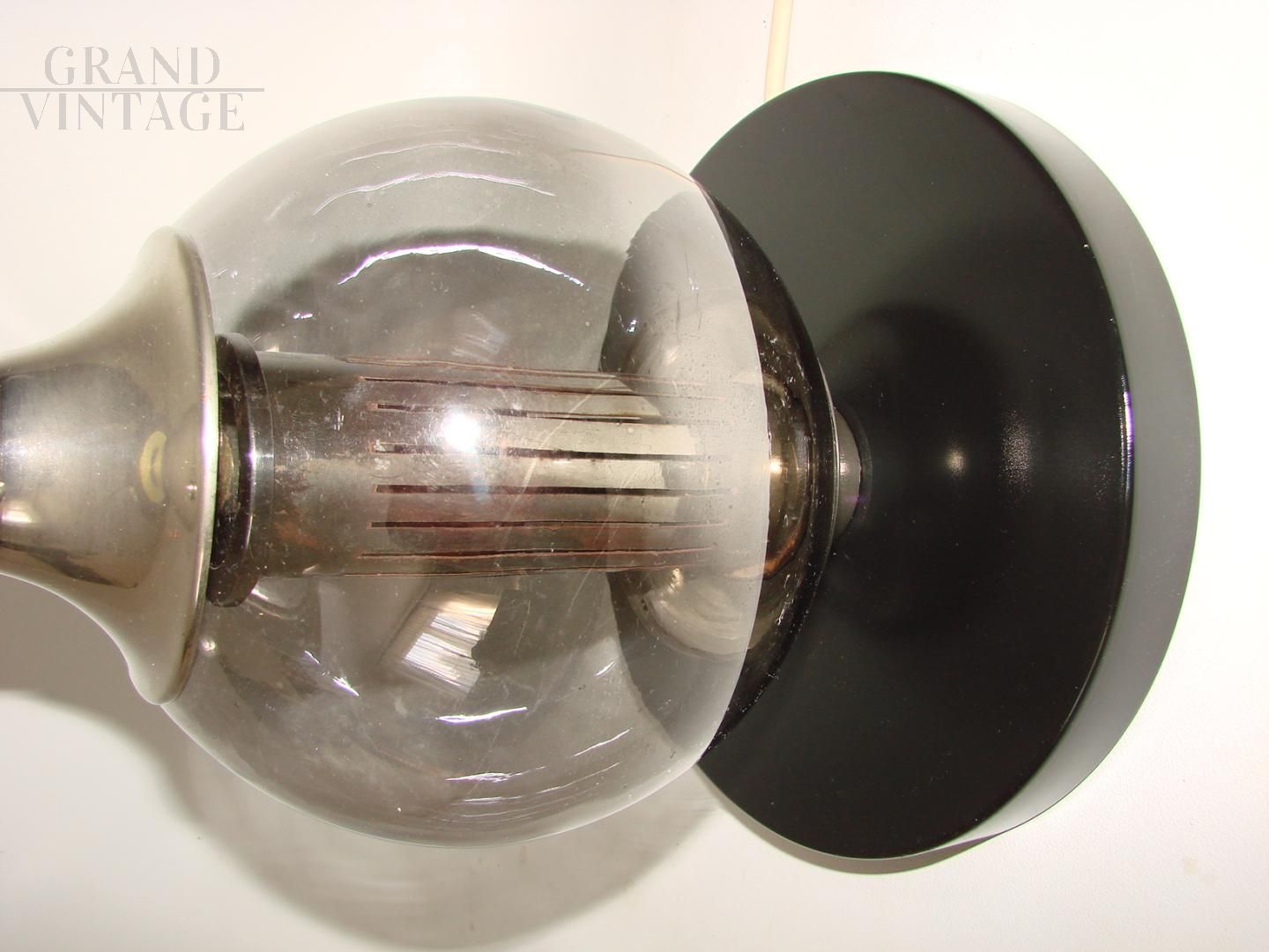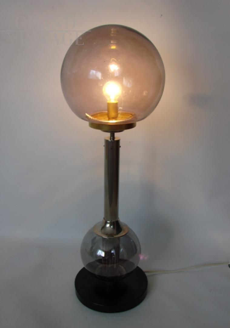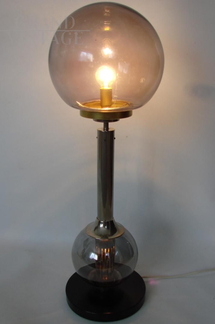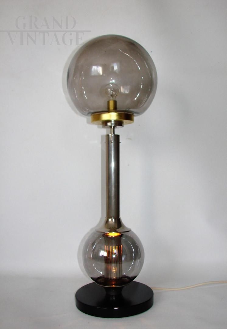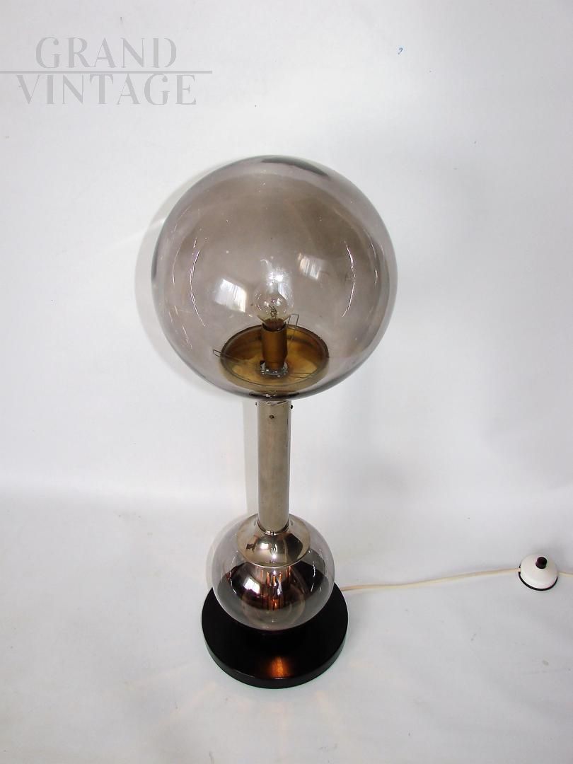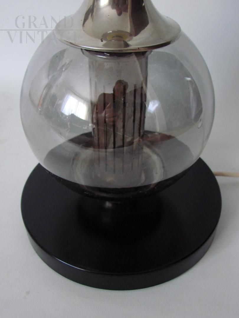 Lampada da tavolo modernista anni '70 in vetro fumé
