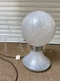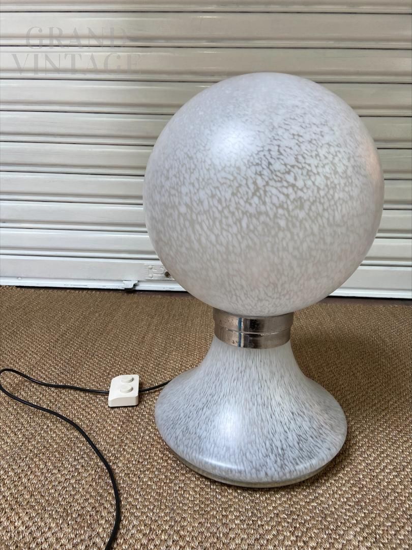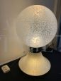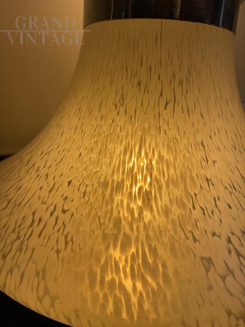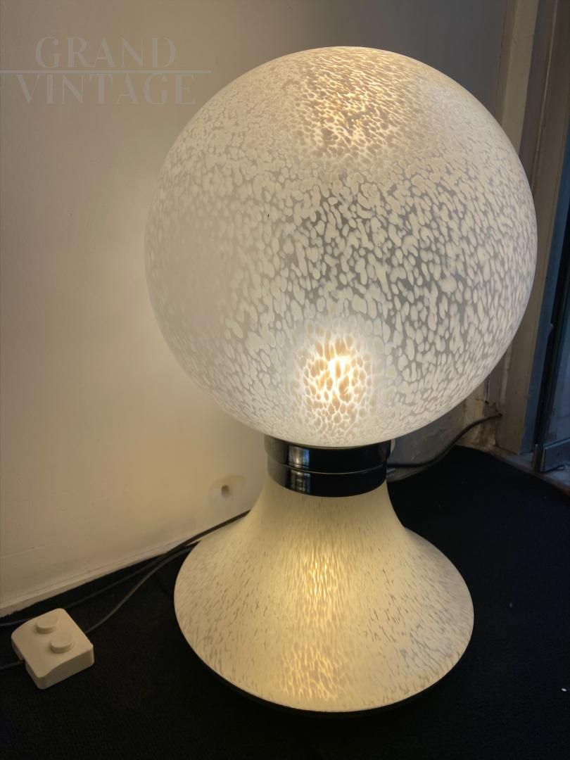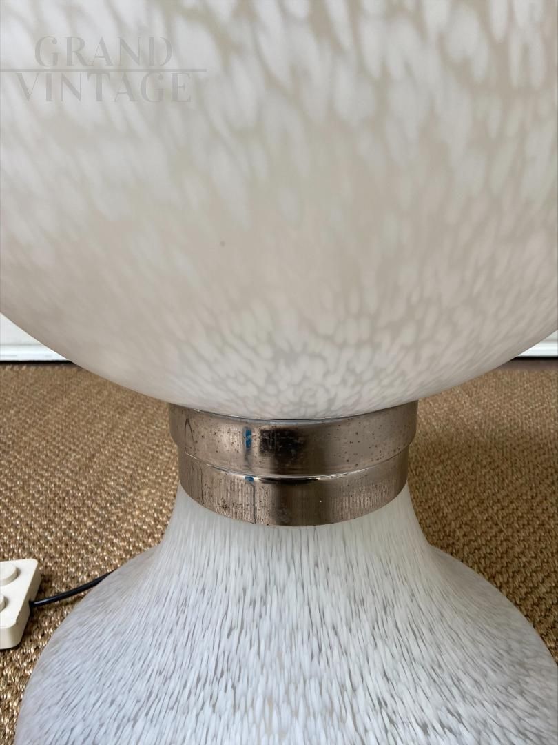 Lampada da tavolo in vetro di Murano in stile Carlo Nason, 1970 circa, illuminata sia nel fusto che nella parte superiore, e completa di interruttore per accendere e spegnere le due luci separatamente. In buone condizioni.