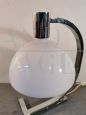 Lampada da tavolo Nemo AS1C di Franco Albini, con struttura in acciaio e paralume in vetro bianco.