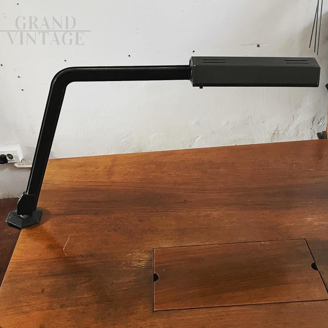 Rara lampada da tavolo Arco con morsetto, della metà del secolo, progettata dallo Studio BBPR di Olivetti nel 1962. È una lampada da scrivania girevole ed estensibile, verniciata in grigio scuro e metallo cromato e con paralume regolabile. È in bellissime condizioni originali.