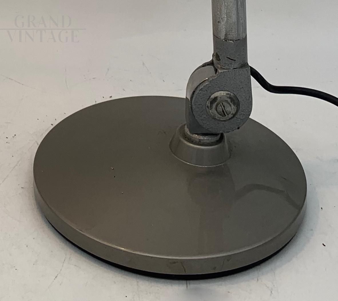 Lampada da tavolo direzionabile design industriale attribuita a Sarfatti, naturalmente ha qualche segno del tempo anche se la verniciaturura originale è ancora molto bella. La lampada gira su se stessa e ha la parabola del paralume movibile. L'impianto elettrico è nuovo con portalampada E 27, e volendo si possono usare le lampadine al led. Perfetta per arredare delle scrivanie o vari mobili sia moderni che vintage.