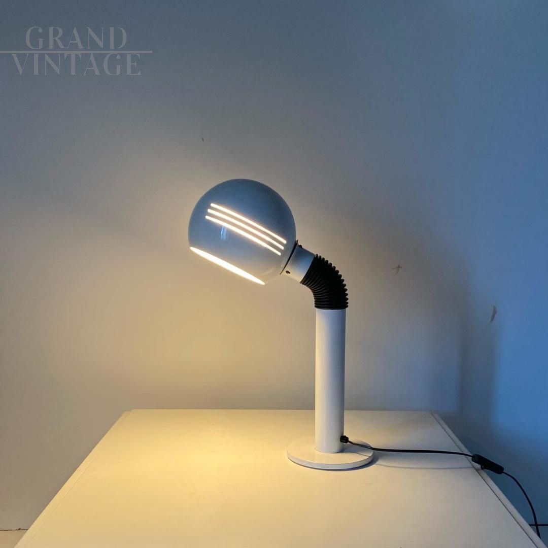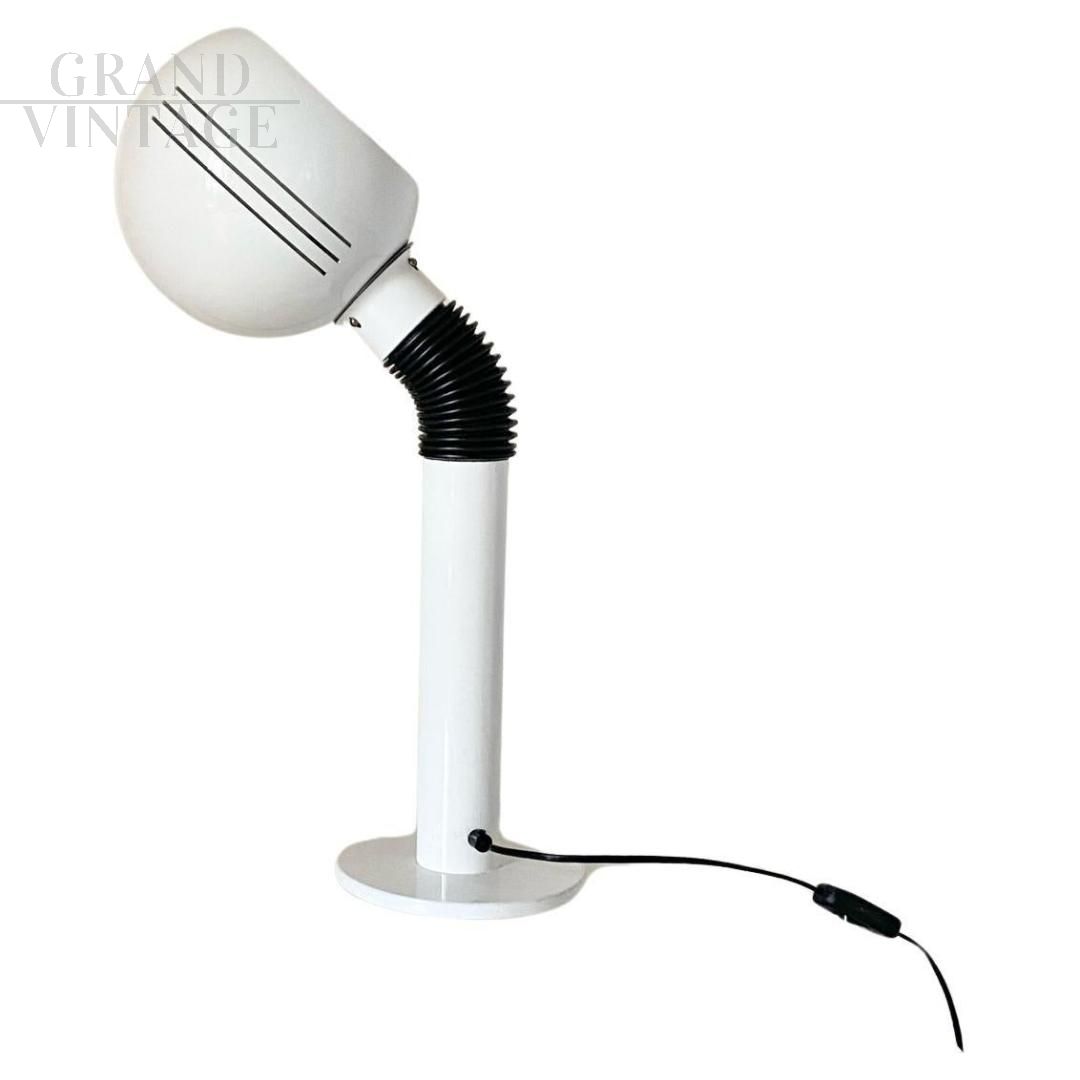 Lampada da tavolo in stile space age prodotta da Zonca, Italia anni '70, con struttura in acciaio laccato bianco, flessibile e regolabile. Revisionata e perfettamente funzionante. In ottime condizioni con qualche segno del tempo.