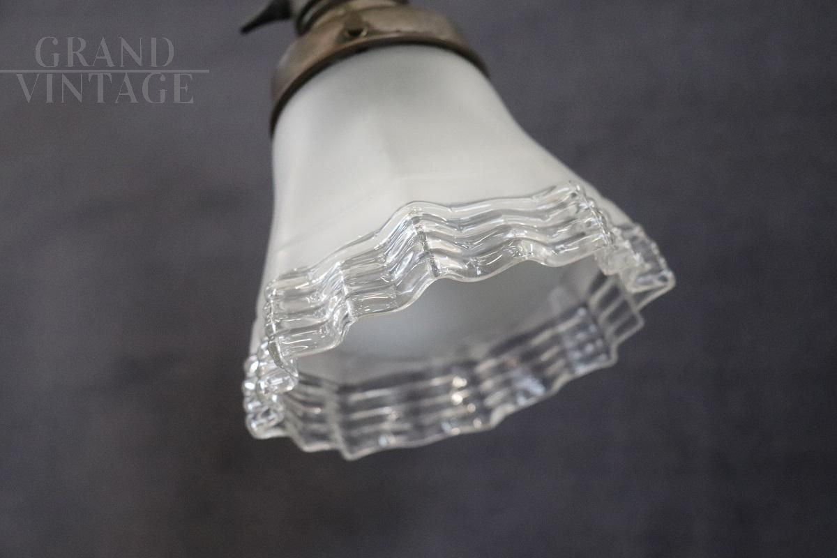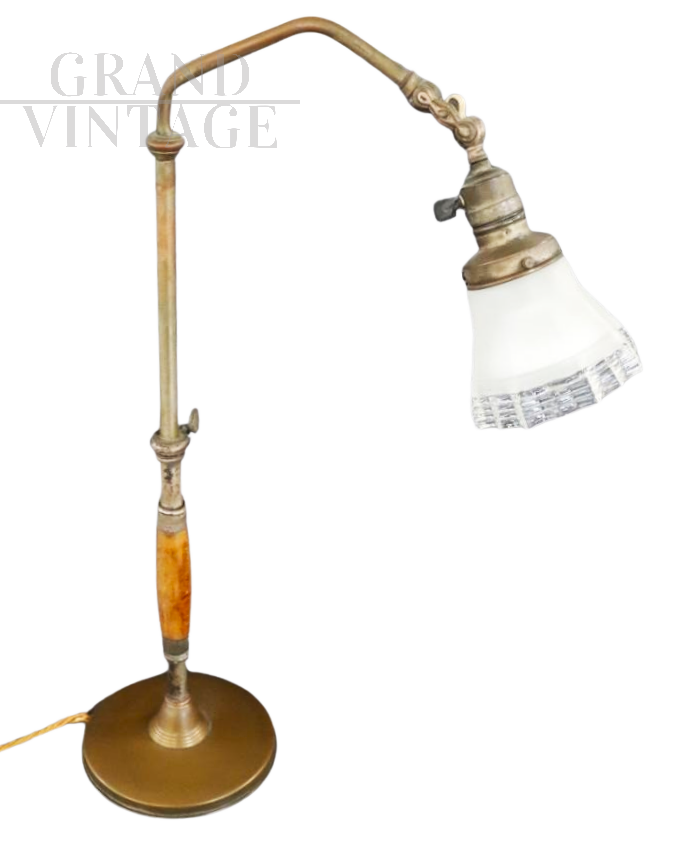 Lampada direzionabile anni '30 in ottone, legno e vetro