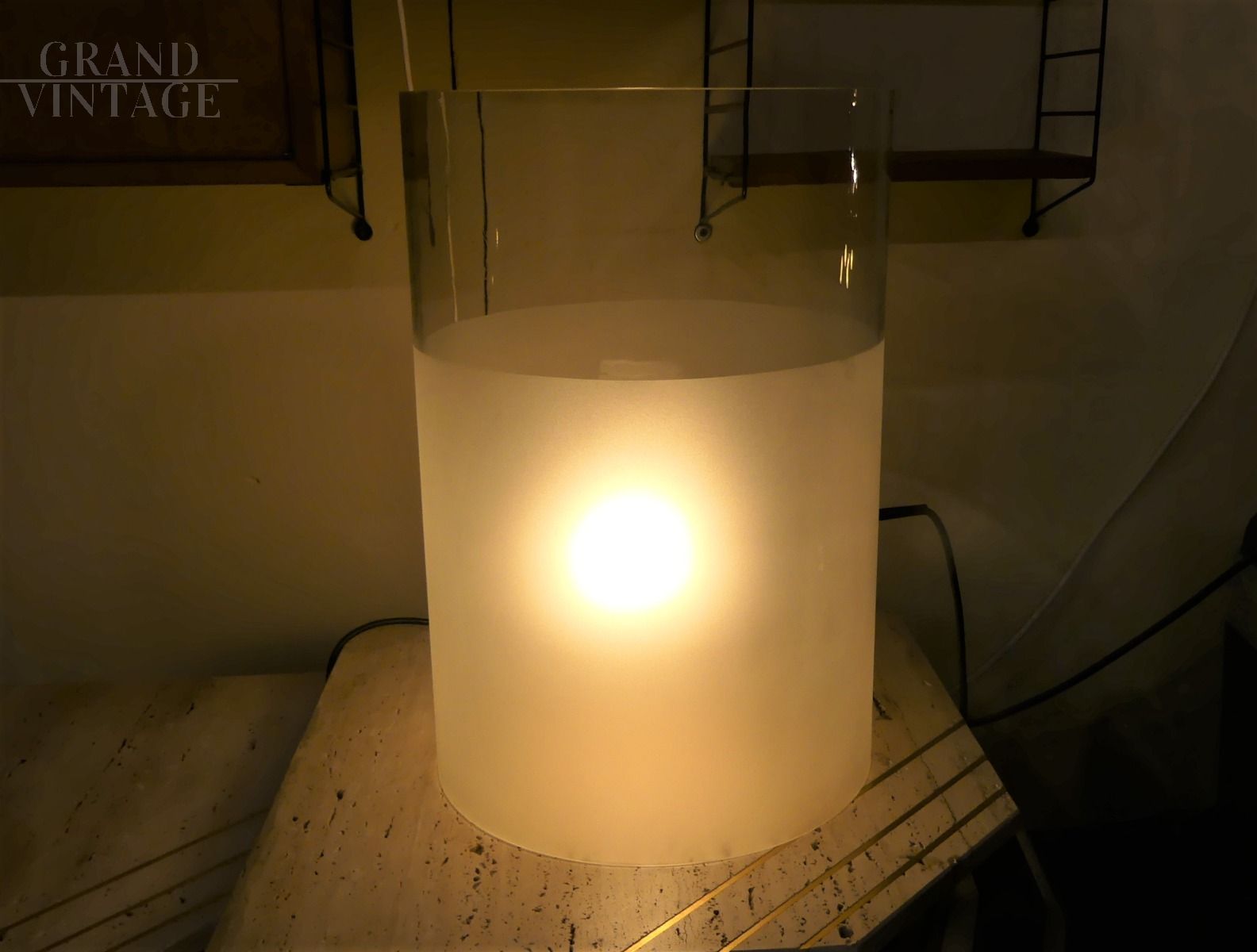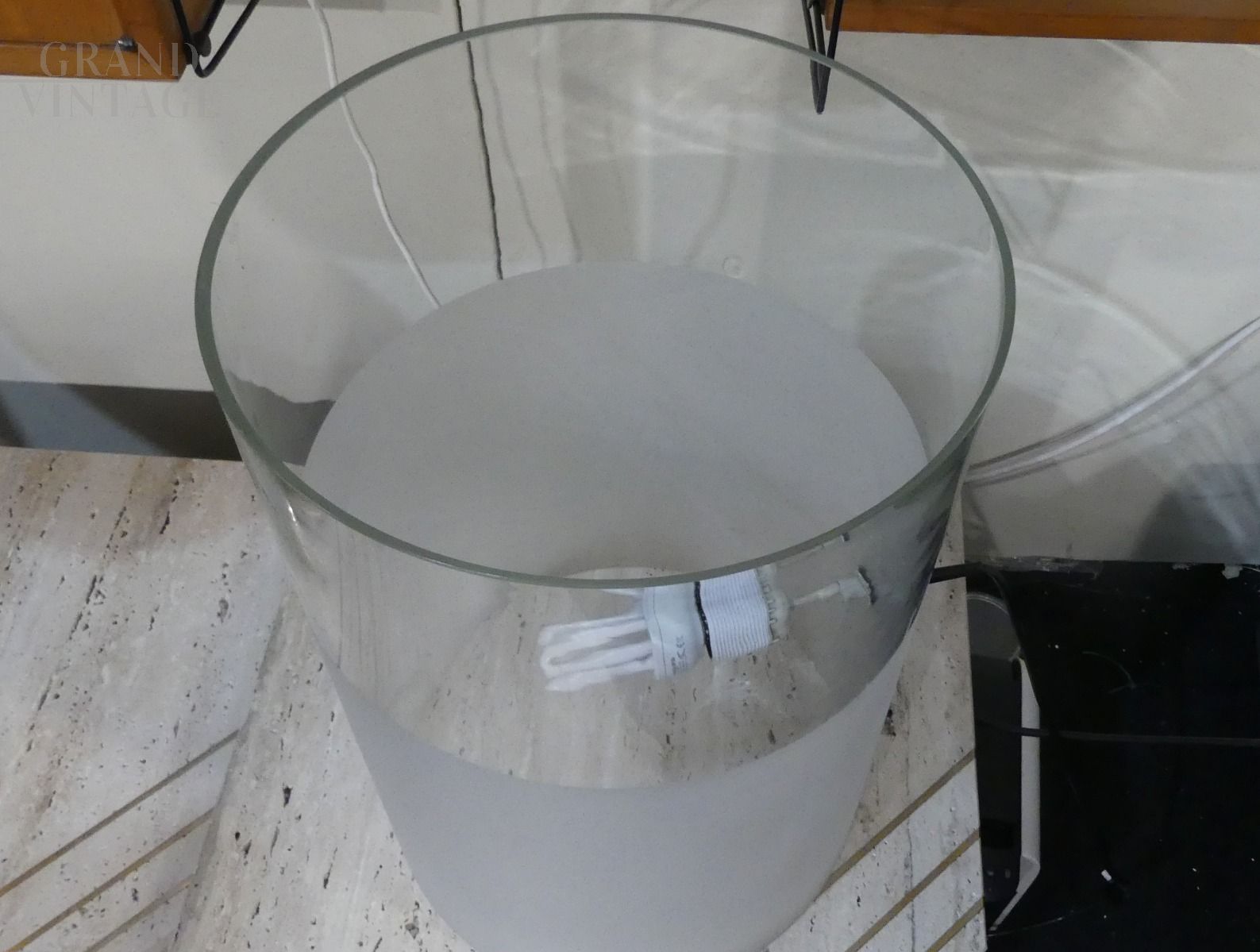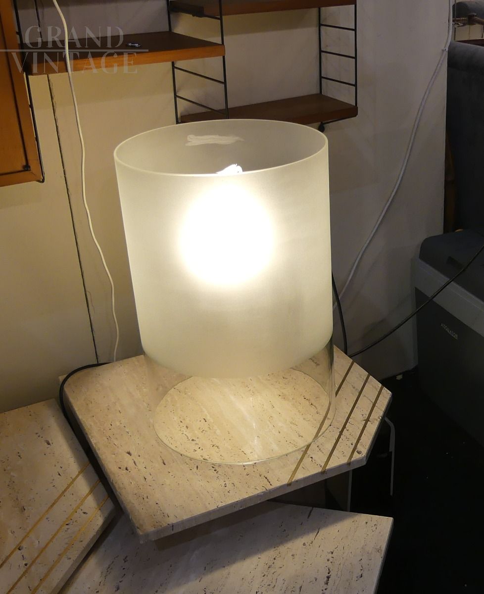 Lampada da tavolo Fatua di Guido Rosati per Fontana Arte, 1962, in vetro trasparente con fascia in vetro satinato.