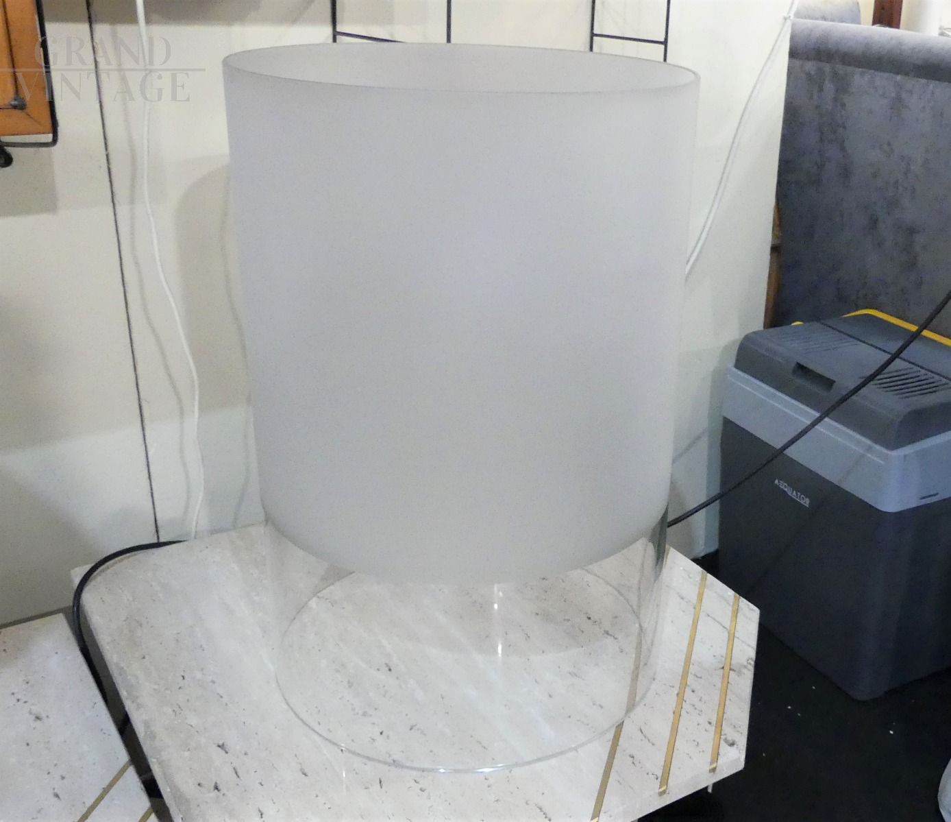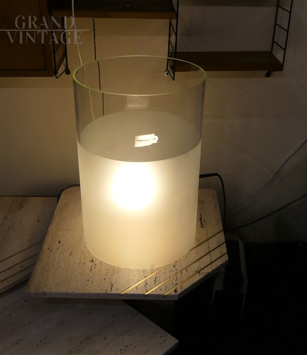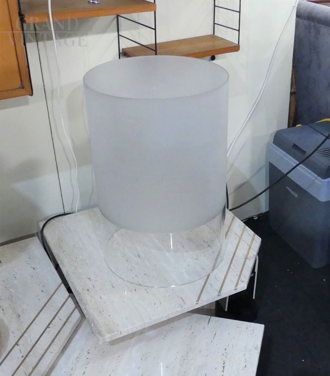 Lampada da tavolo Fatua di Guido Rosati per Fontana Arte, 1962, in vetro trasparente con fascia in vetro satinato.