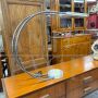 Lampada da tavolo Gesto di Bruno Gecchelin per Skipper, utilizzabile anche come lampadario, modernariato italiano del 1975, realizzata in metallo cromato curvato con parti laccate bianche. Utilizzabile sia come lampadario a sospensione o lampada da tavolo, in stato molto buono. Disponibile la coppia, il prezzo si riferisce al singolo pezzo.