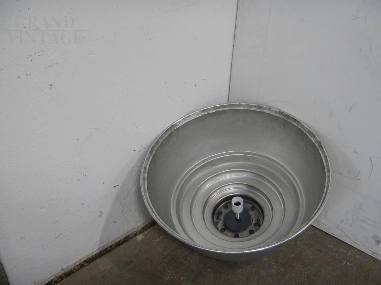 Grande lampada a sospensione industriale a campana in alluminio anni '50 con diametro 58 cm, impianto elettrico funzionante con attacco per lamadina di tipo E27. Disponibili 20 pezzi, il prezzo si riferisce al singolo pezzo.