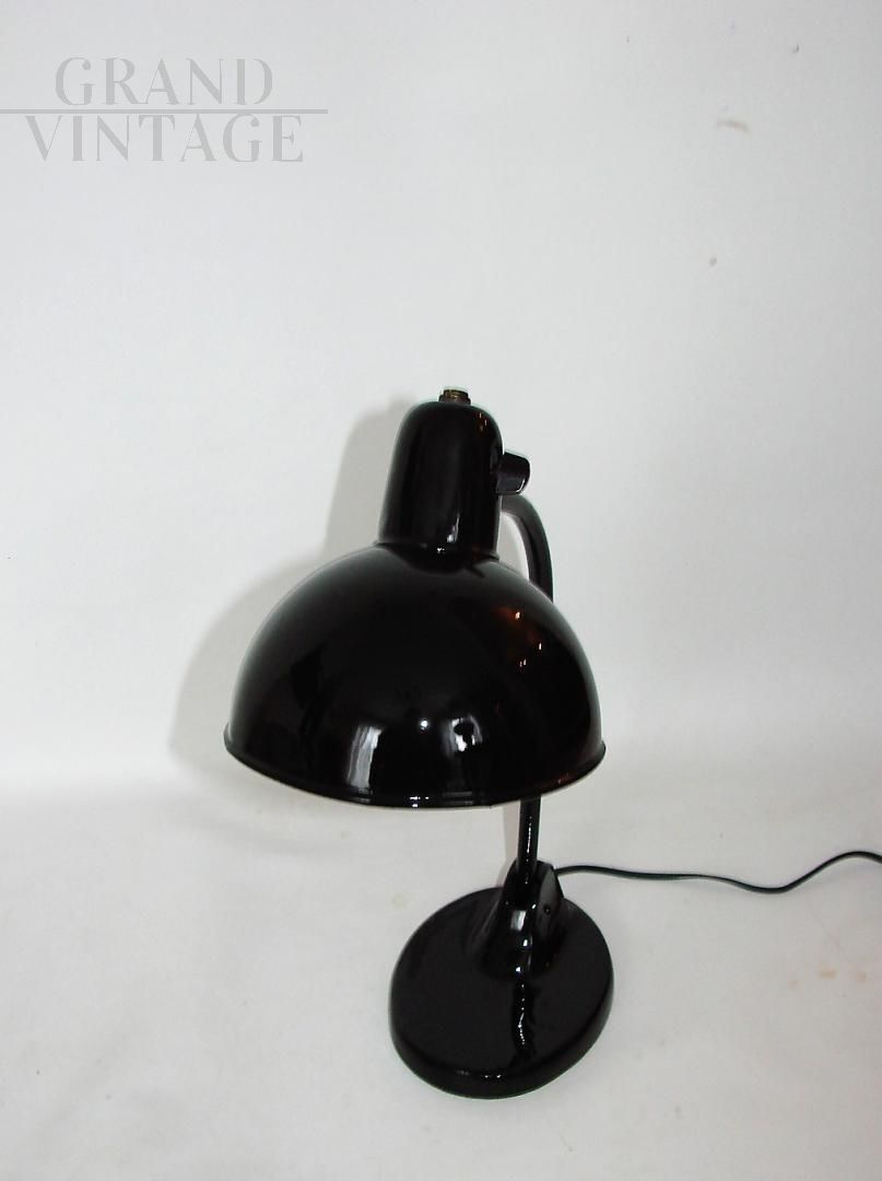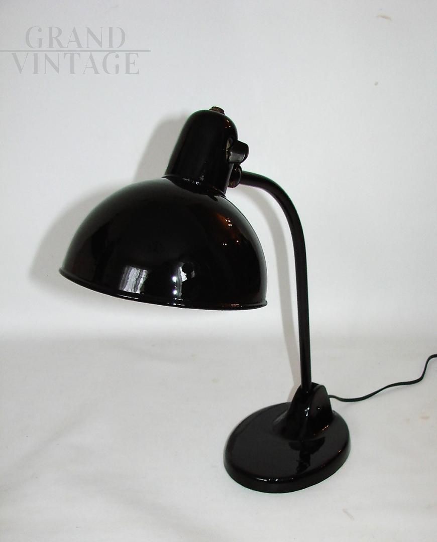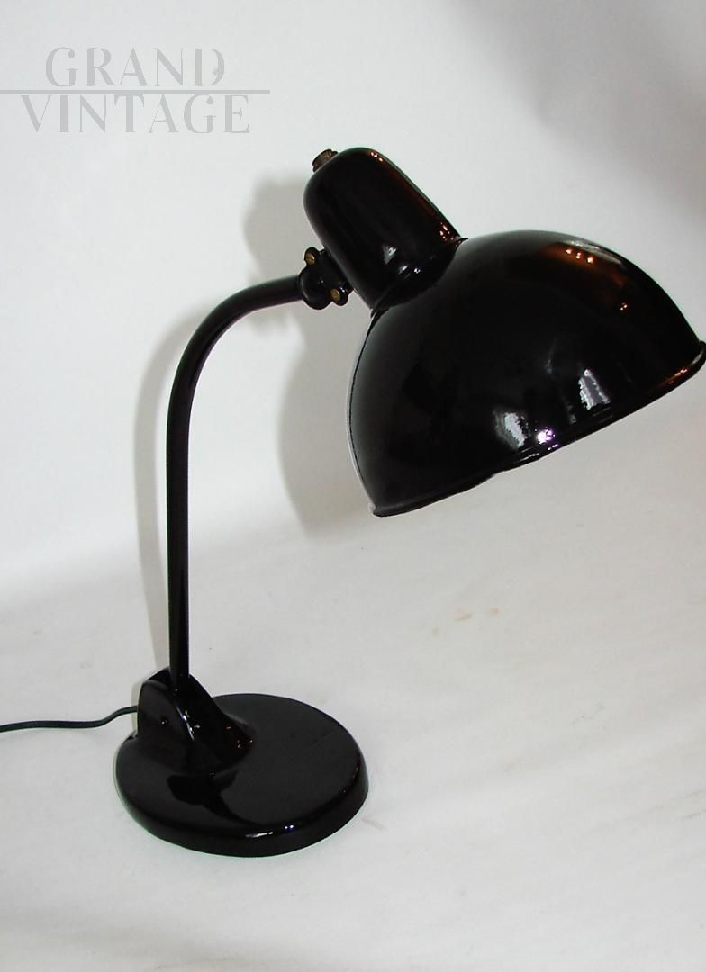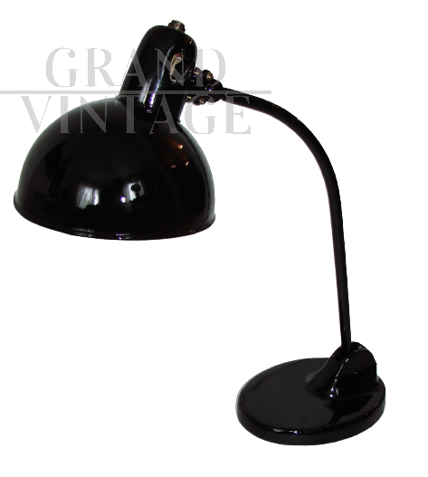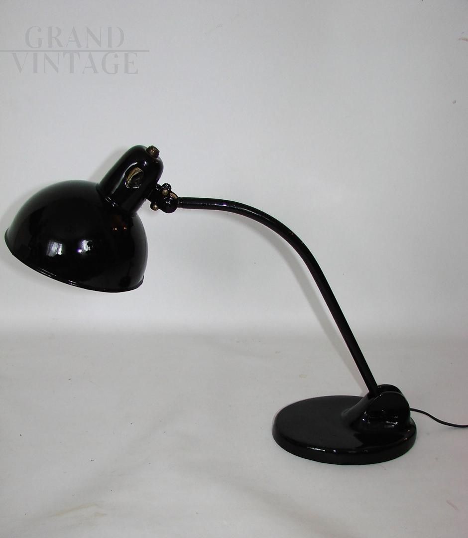 Lampada da ufficio Kandem vintage nera stile Bauhaus anni '20, conservata in buone condizioni. La lampada necessita di una lampadina E27, e ha un interruttore on/off nel paralume e un braccio mobile.