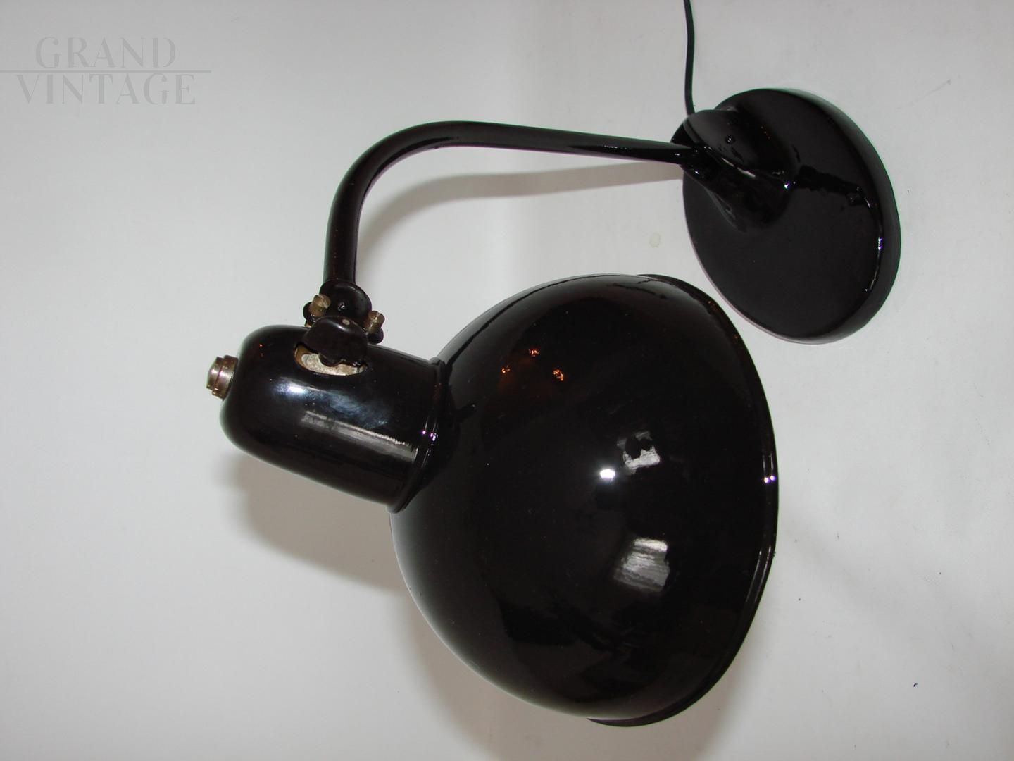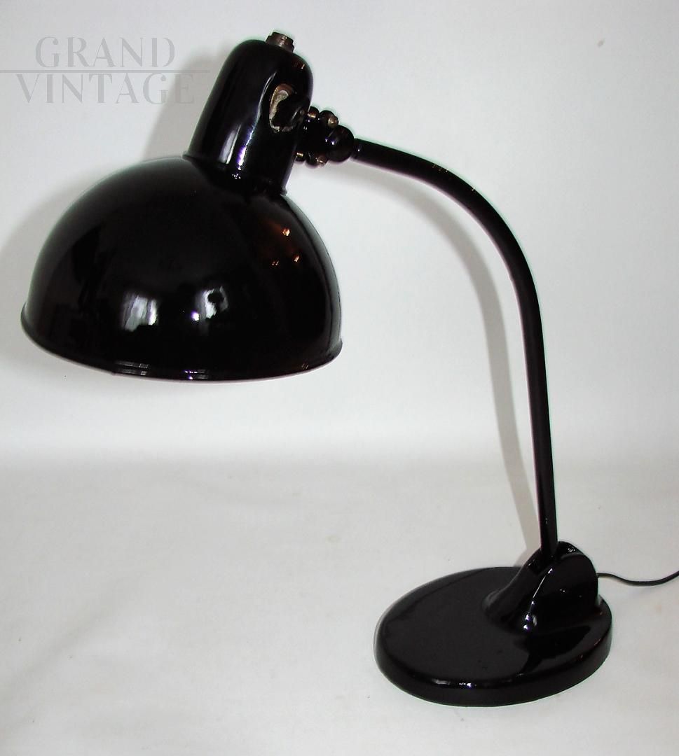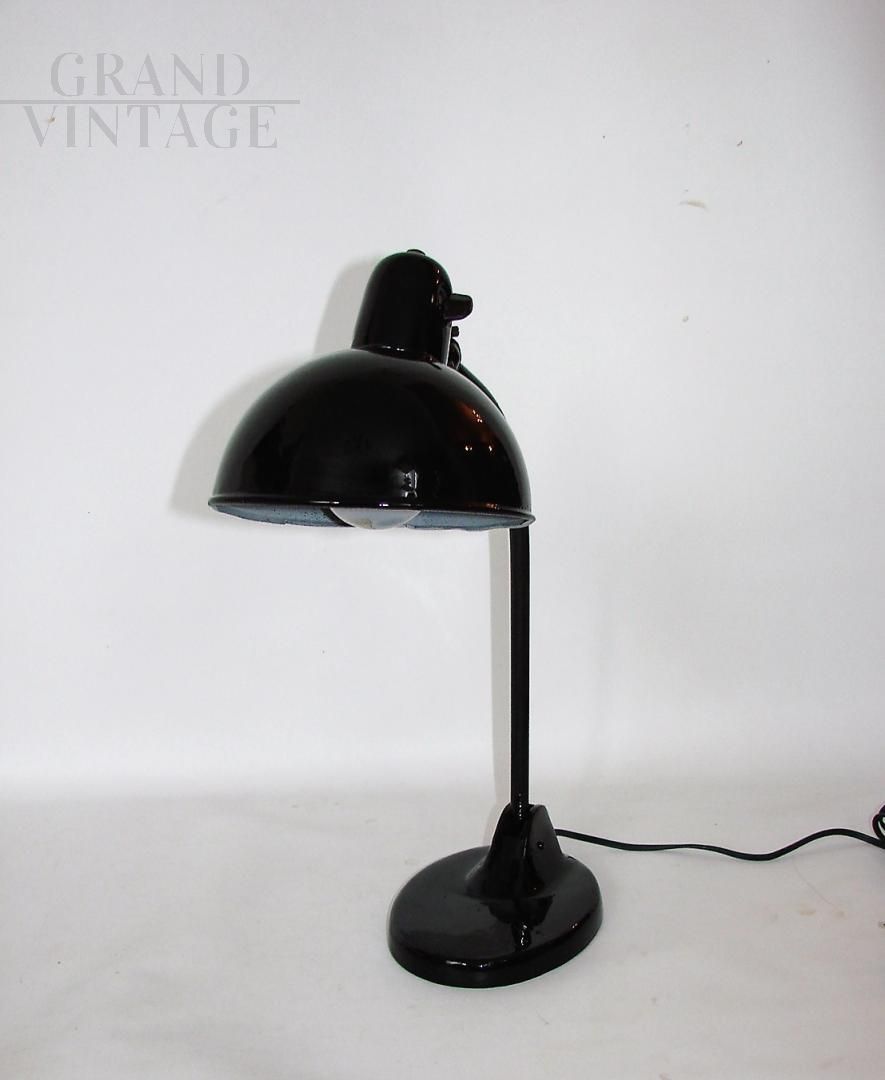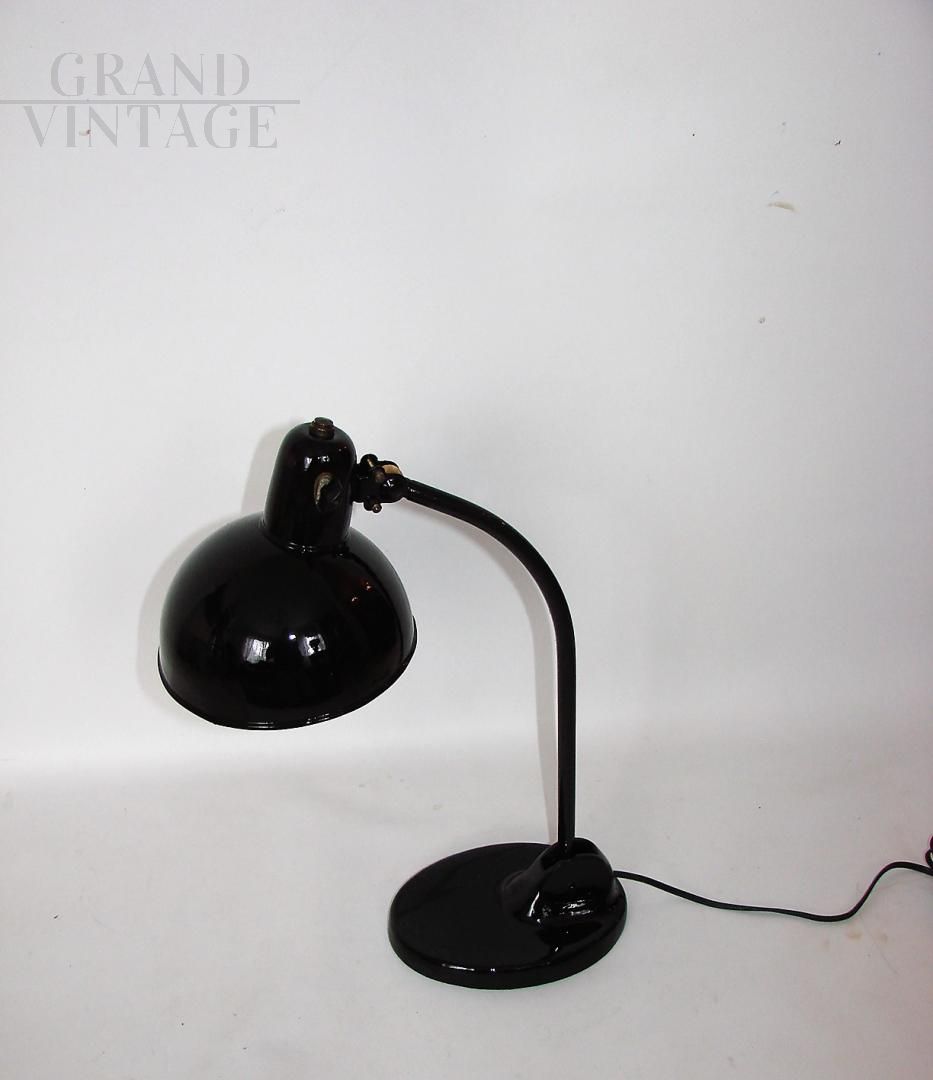 Lampada da ufficio Kandem vintage nera stile Bauhaus anni '20, conservata in buone condizioni. La lampada necessita di una lampadina E27, e ha un interruttore on/off nel paralume e un braccio mobile.