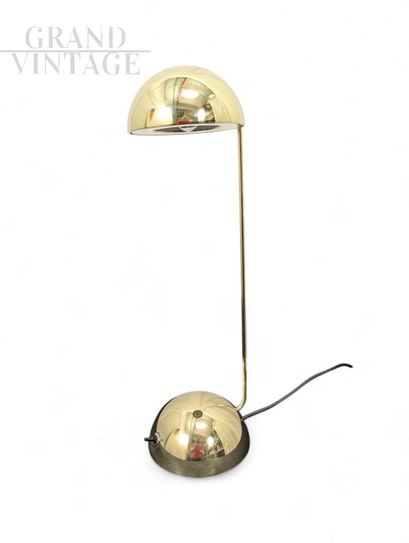 Lampada Minikini in ottone disegnata da Barbieri e Marianelli per Tronconi negli anni '80. Realizzata in ottone e metallo. Un design sorprendentemente semplice e raffinato per l'epoca, questa lampada altamente regolabile può essere ruotata in diverse posizioni per creare una diversità luminosa versatile. Sulla base è presente l'interruttore per l'accensione e spegnimento della lampada. C'è possibilità di scegliere una tonalità di luce classica o più tenue. Tronconi è stata un'importante azienda italiana di illuminazione e design fondata da Enrico Tronconi. In precedenza, Tronconi aveva progettato l'iconica lampada da terra "Bamboo" per Vistosi. Le condizioni della lampada sono ottime, la lampada è stata lucidata e portata a nuovo. Lampadina inclusa. dimensioni 46 x 14 x 14 cm (altezza,