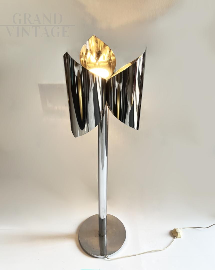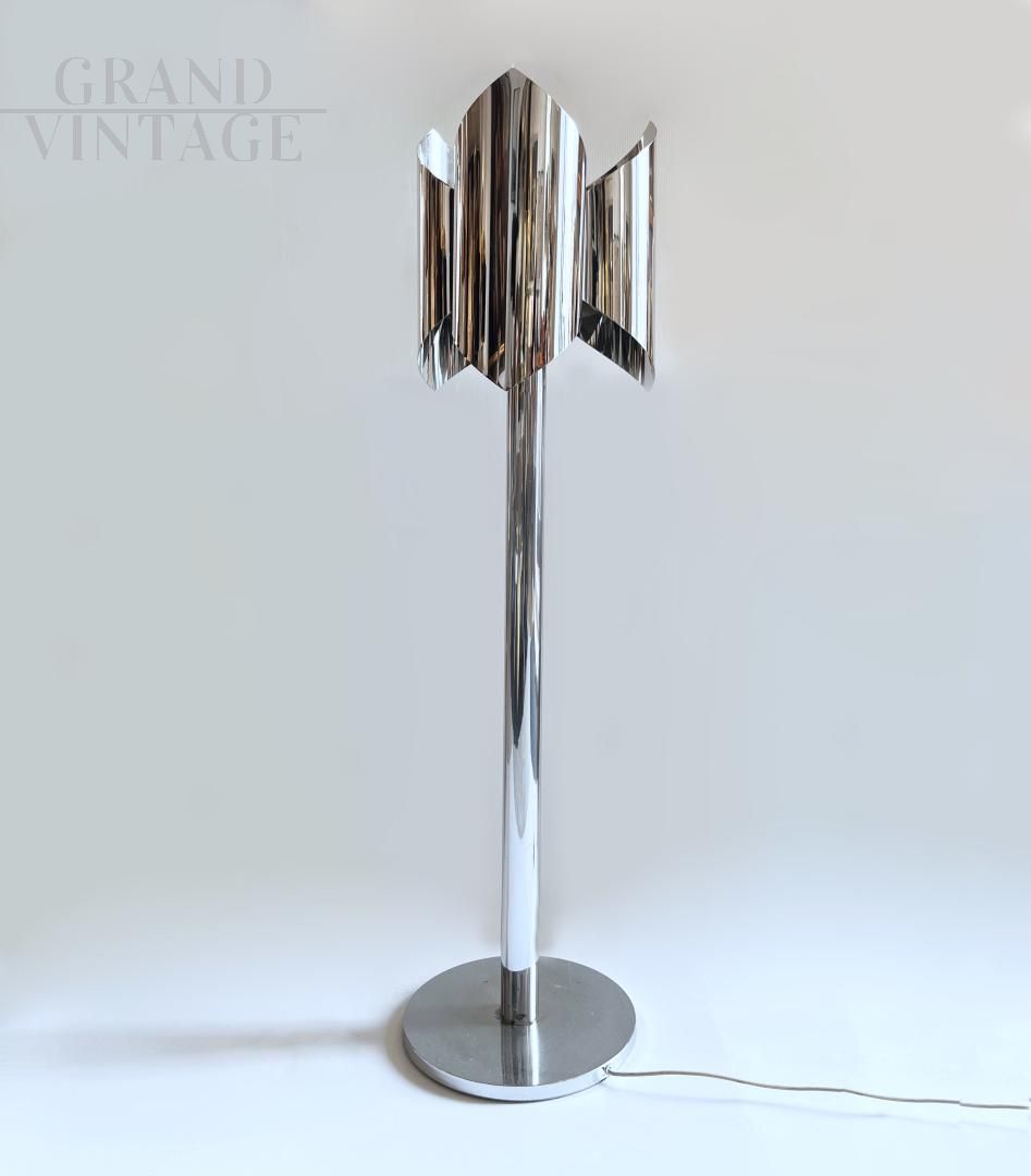 Lampada piantana design attribuibile a Francois Monnet in acciaio