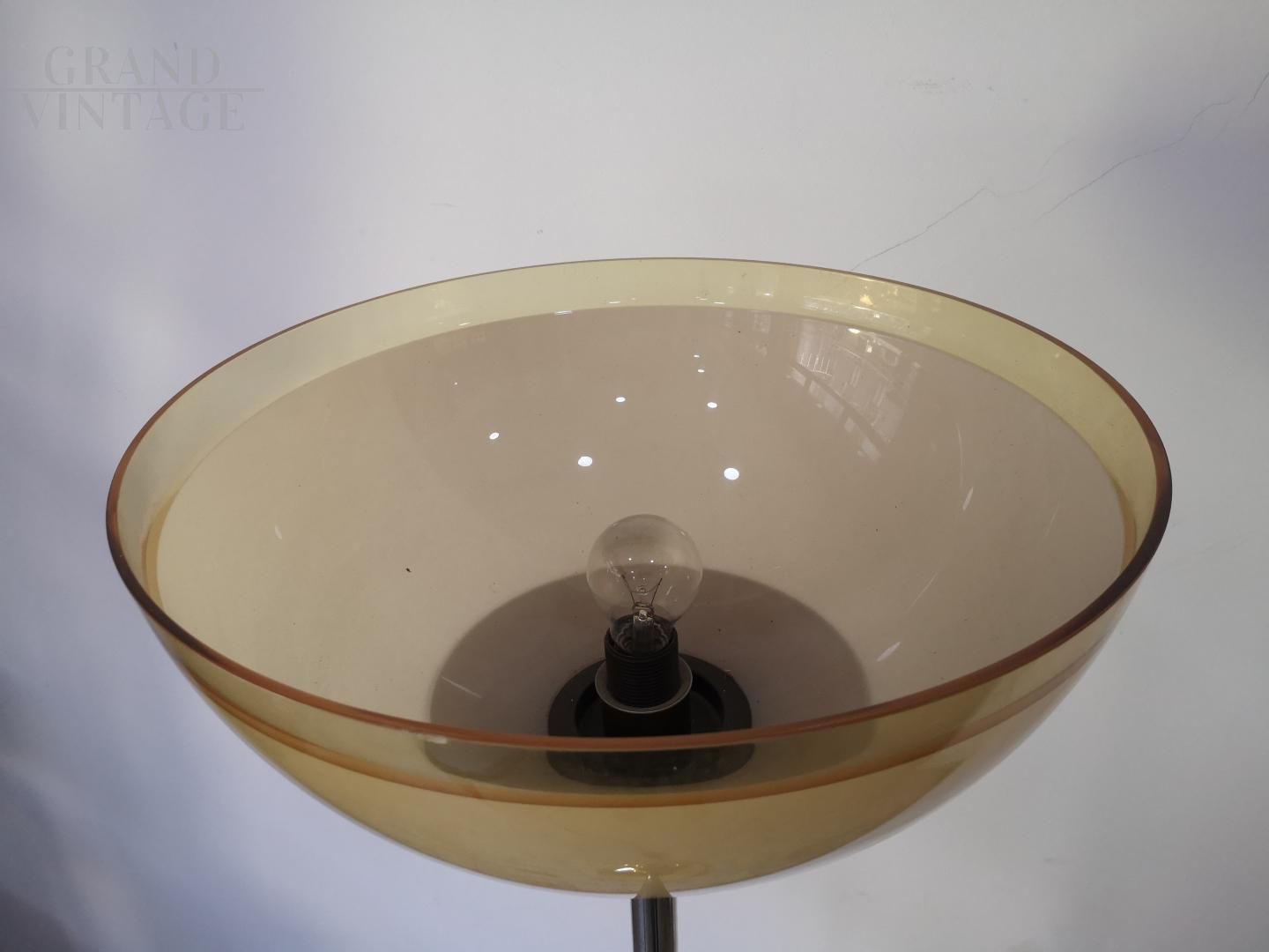 Misure: Altezza 168 cm, diametro base in ottone 32 cm, diametro riflettore in plexiglass 46 cm.