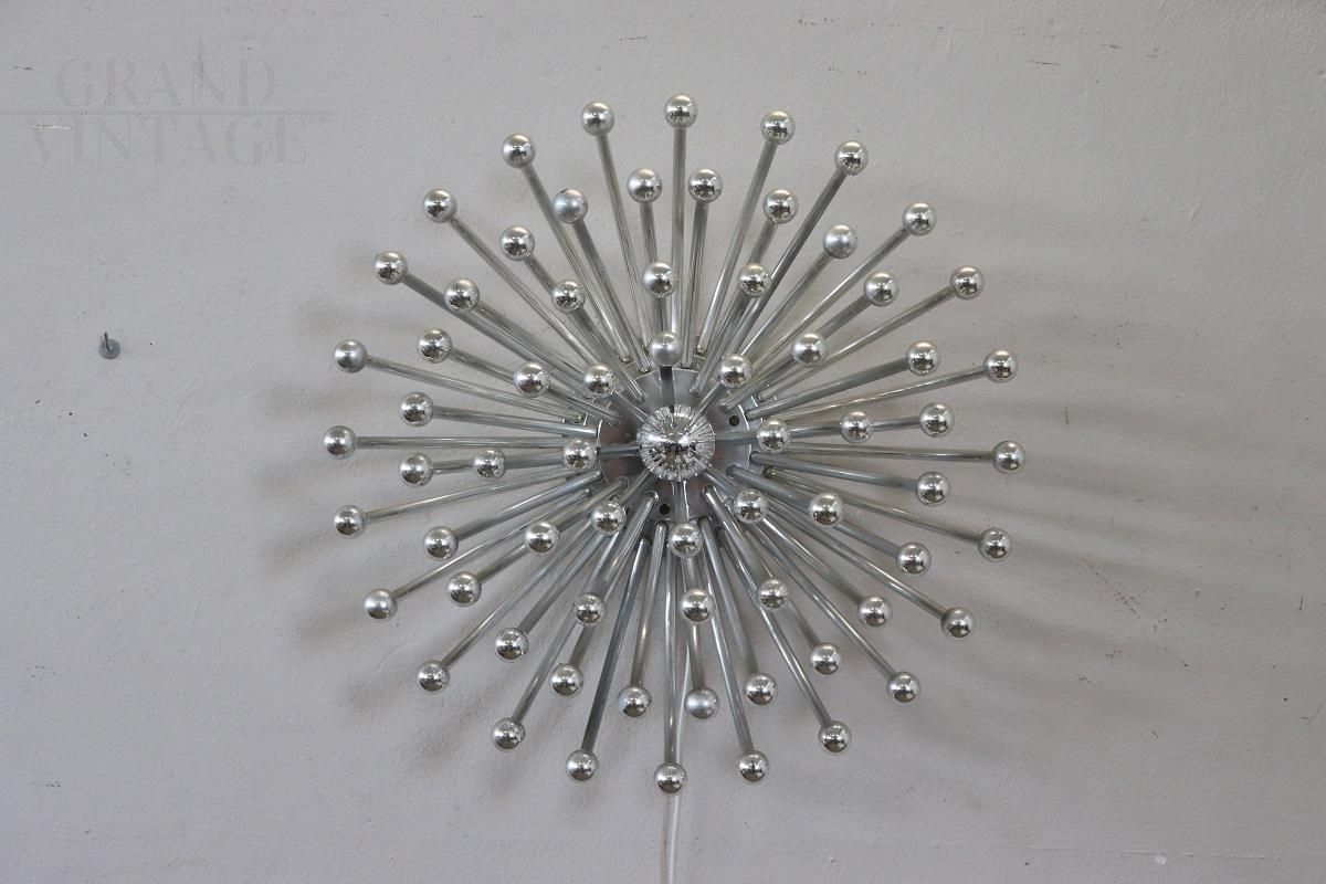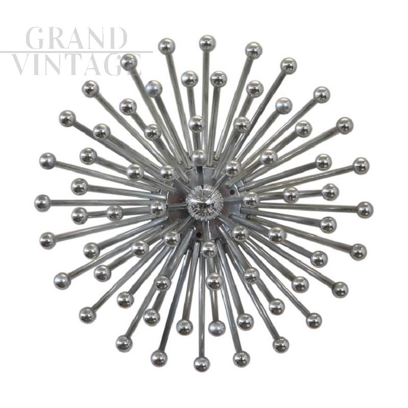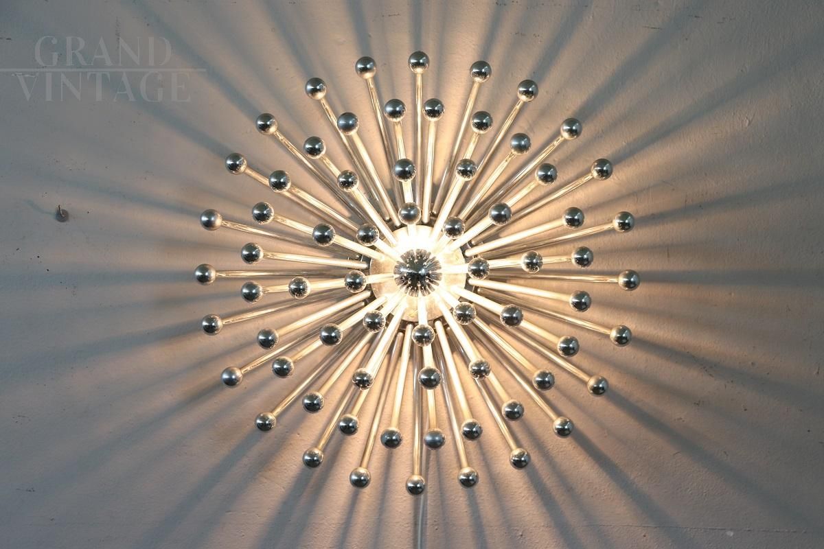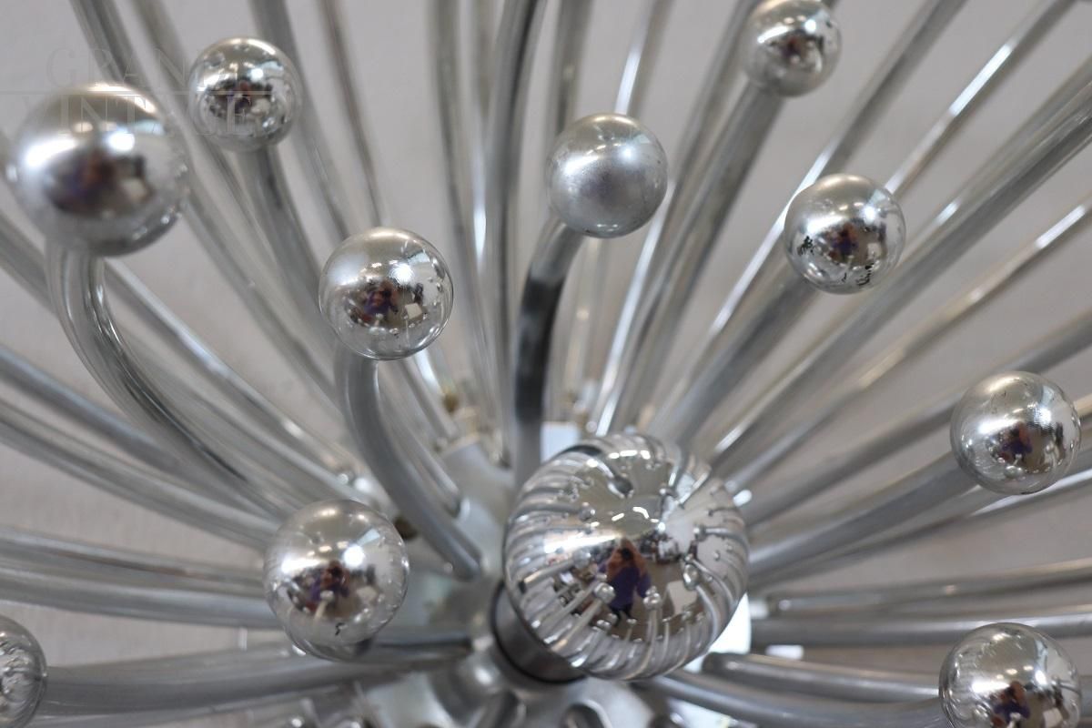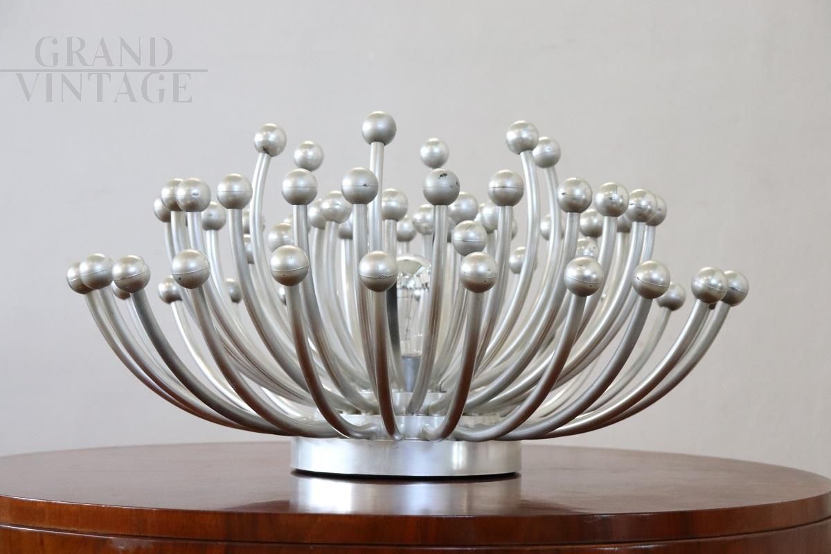 Questa straordinaria lampada di design italiano, con il marchio Valenti & C. sotto la base, è un vero e proprio capolavoro degli anni Settanta. Il modello Pistillo, disegnato dallo Studio Tetrach, presenta una straordinaria fusione di materiali moderni come la plastica e la cromatura, riflettendo l'estetica innovativa e l'approccio funzionale caratteristici dei migliori designer italiani dell'epoca. Le condizioni della lampada sono buone, con minimi segni di usura che si notano appena quando la lampada è posizionata, come mostrato nelle foto. L'impianto elettrico è stato ricablato. Ispirata al pistillo dei fiori, questa lampada non è solo un oggetto funzionale ma anche un'opera d'arte scultorea che attinge alle forme della natura. Marchio presente, prezzo trattabile.