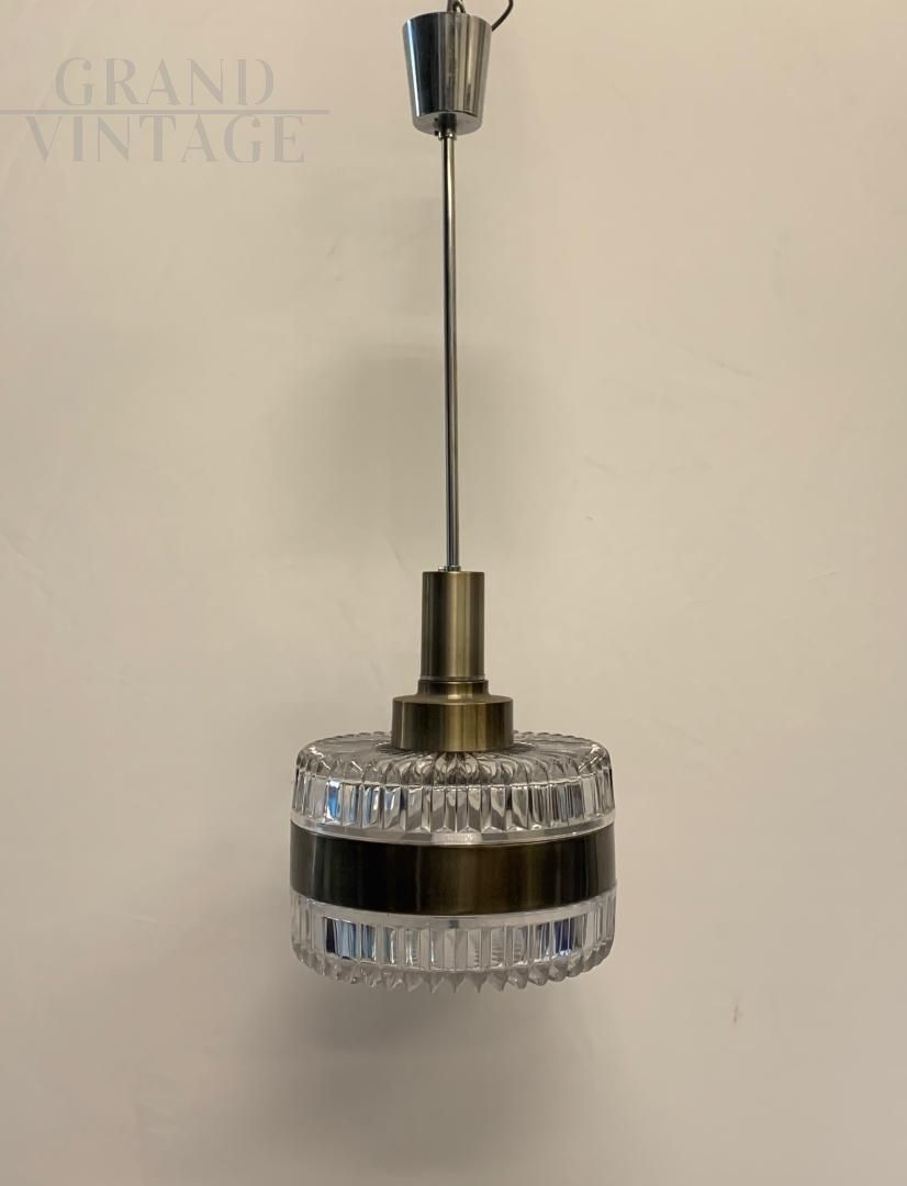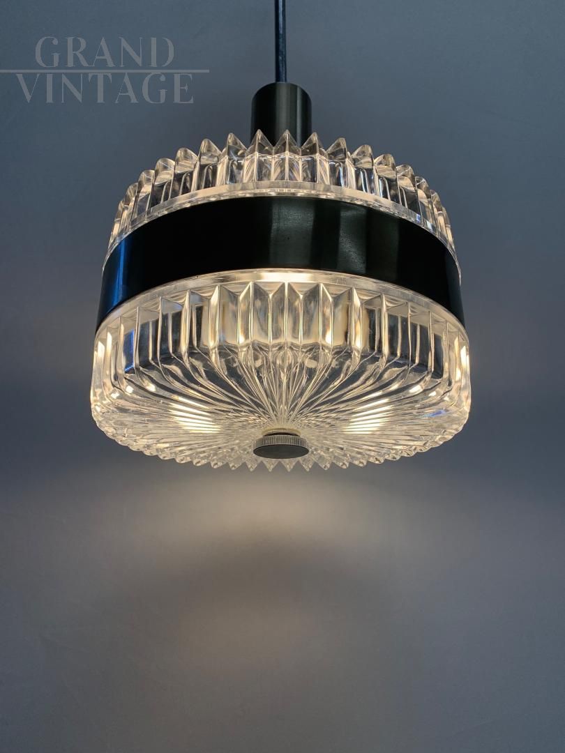 Lampadario lampada a sospensione sfaccettata attribuita a Sciolari, anni '60