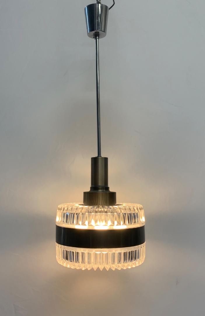 Lampadario lampada a sospensione design attribuibile a Sciolari in vetro sfaccettato, anni '70, in buone condizioni, con pochi naturali segni del tempo sulla struttura. La lampada è tutta originale e funzionante,un ottimo elemento che può arredare diverse stanze: dalla cucina alla sala, dall'entrata alla camera e al bagno. Ha diversi punti luce che possono supportare le lampadine al led. Su richiesta si può preparare il lampadario per adattarlo a un impianto elettrico americano.