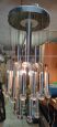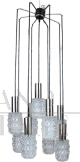 Lampadario a cascata anni '70 in acciaio e cristalli