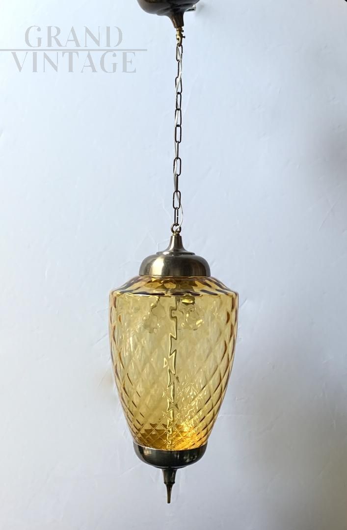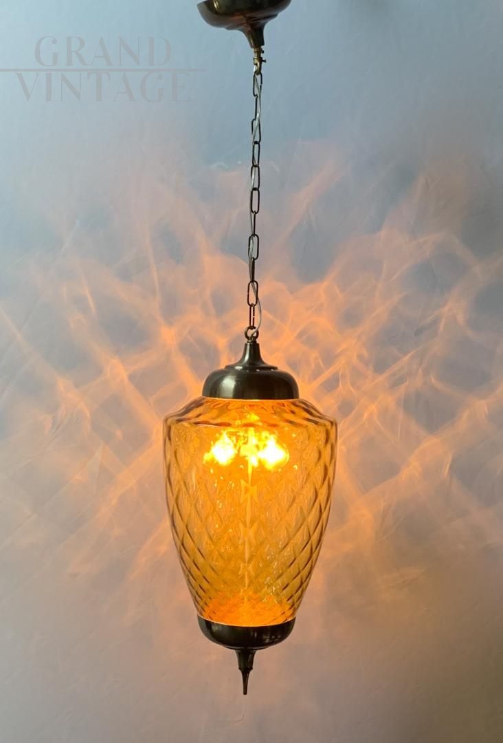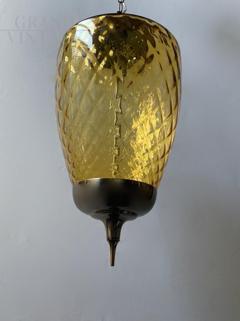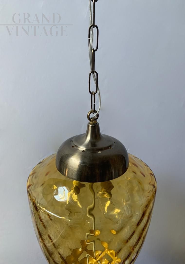 Lampadario a lanterna in vetro di Murano color ambra