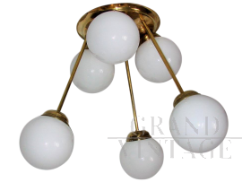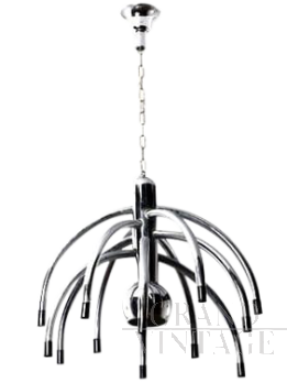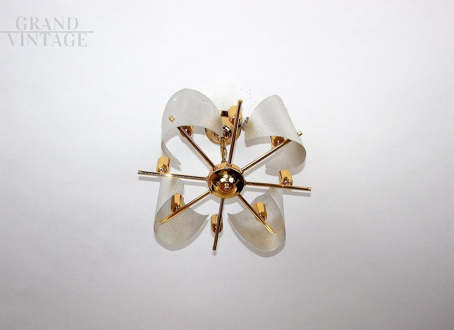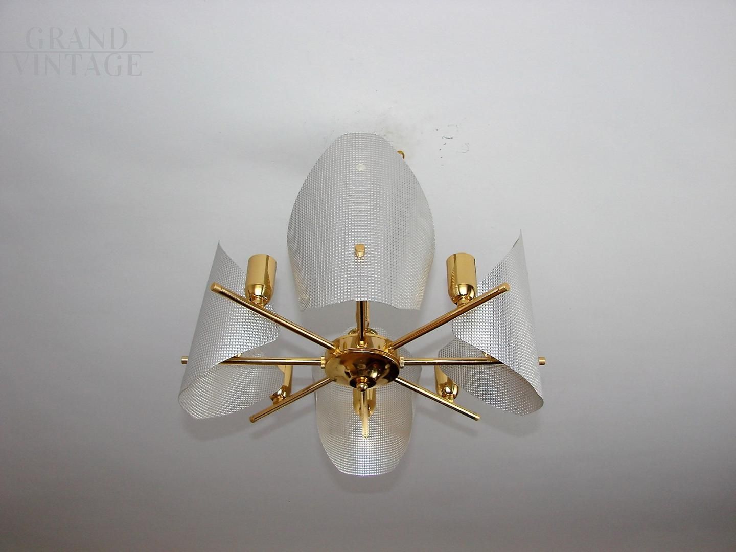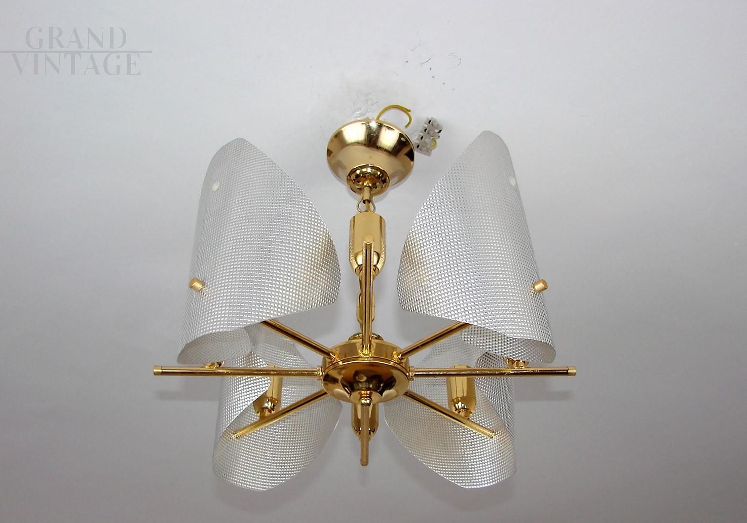 Lampadario anni '70 in alluminio e acciaio ottonato