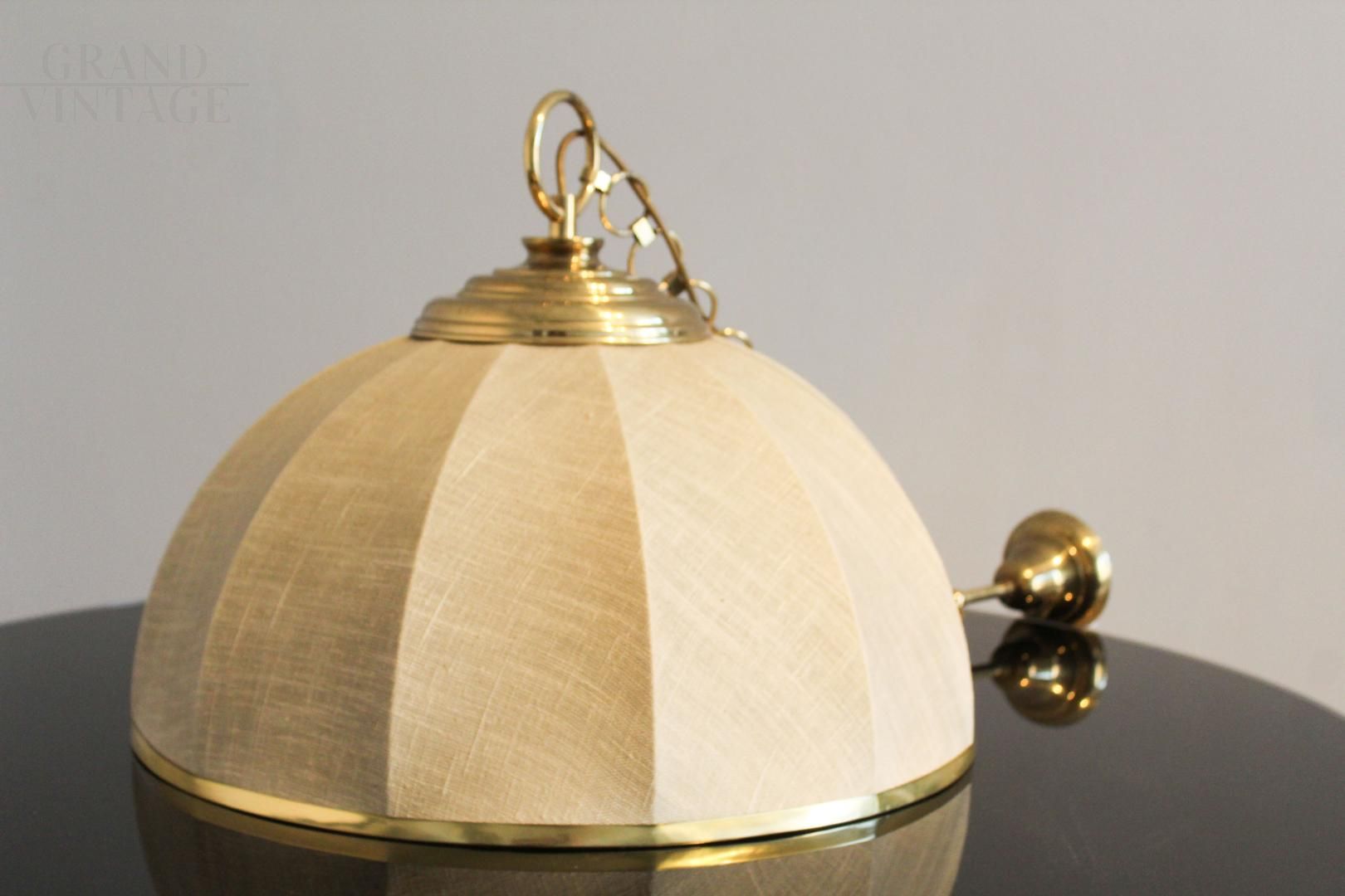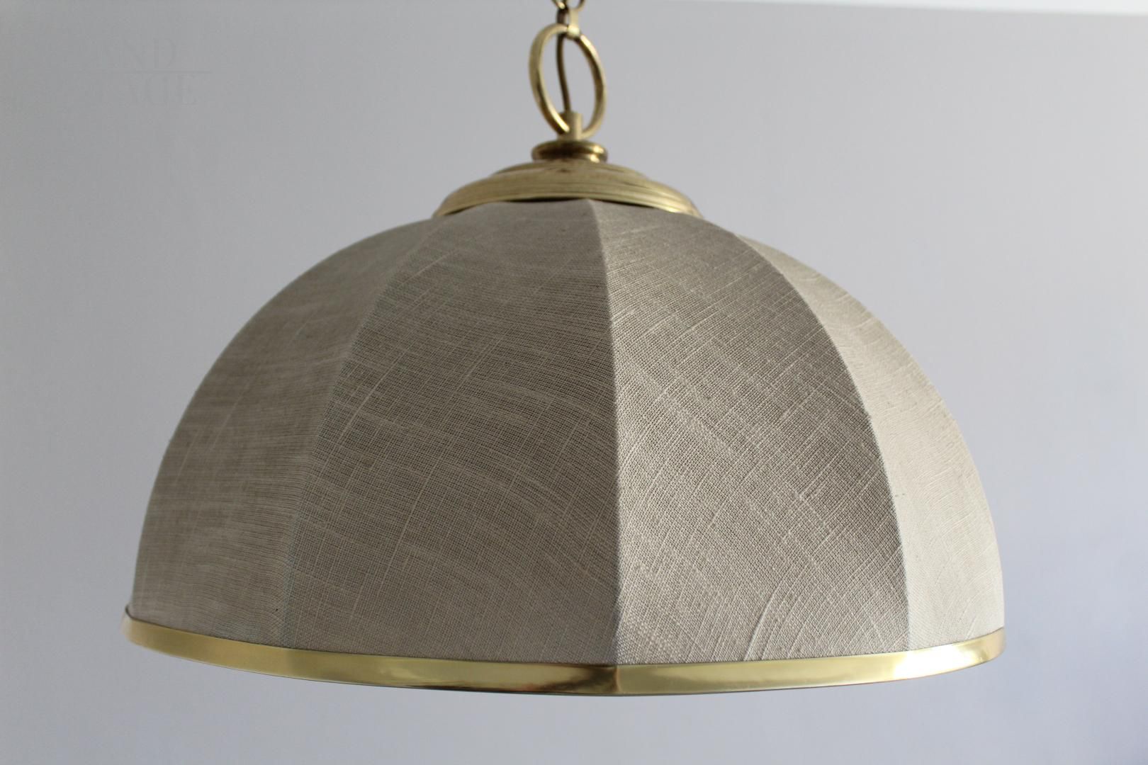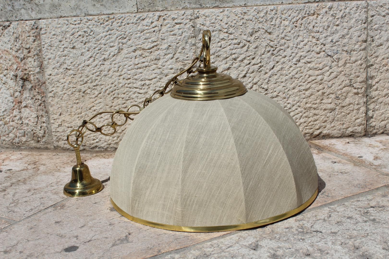 Lampadario anni '70 in stile coloniale, in tela e ottone