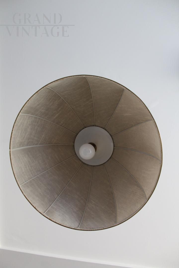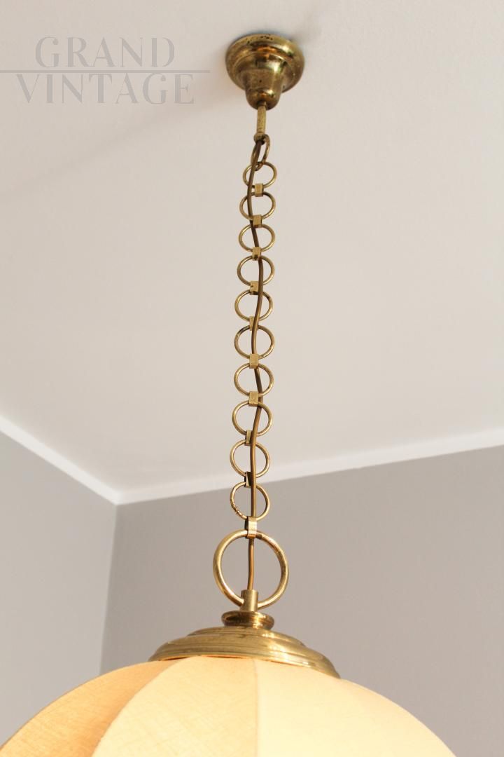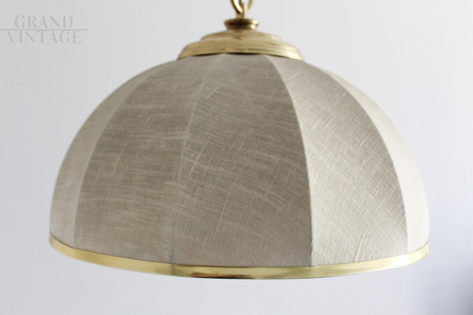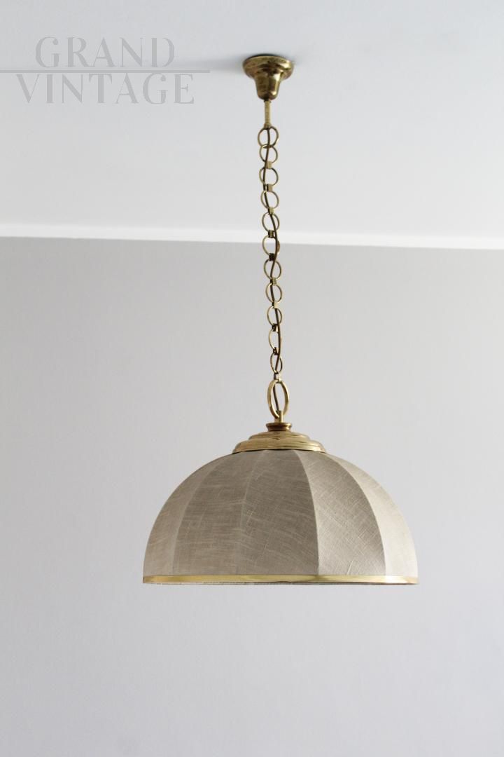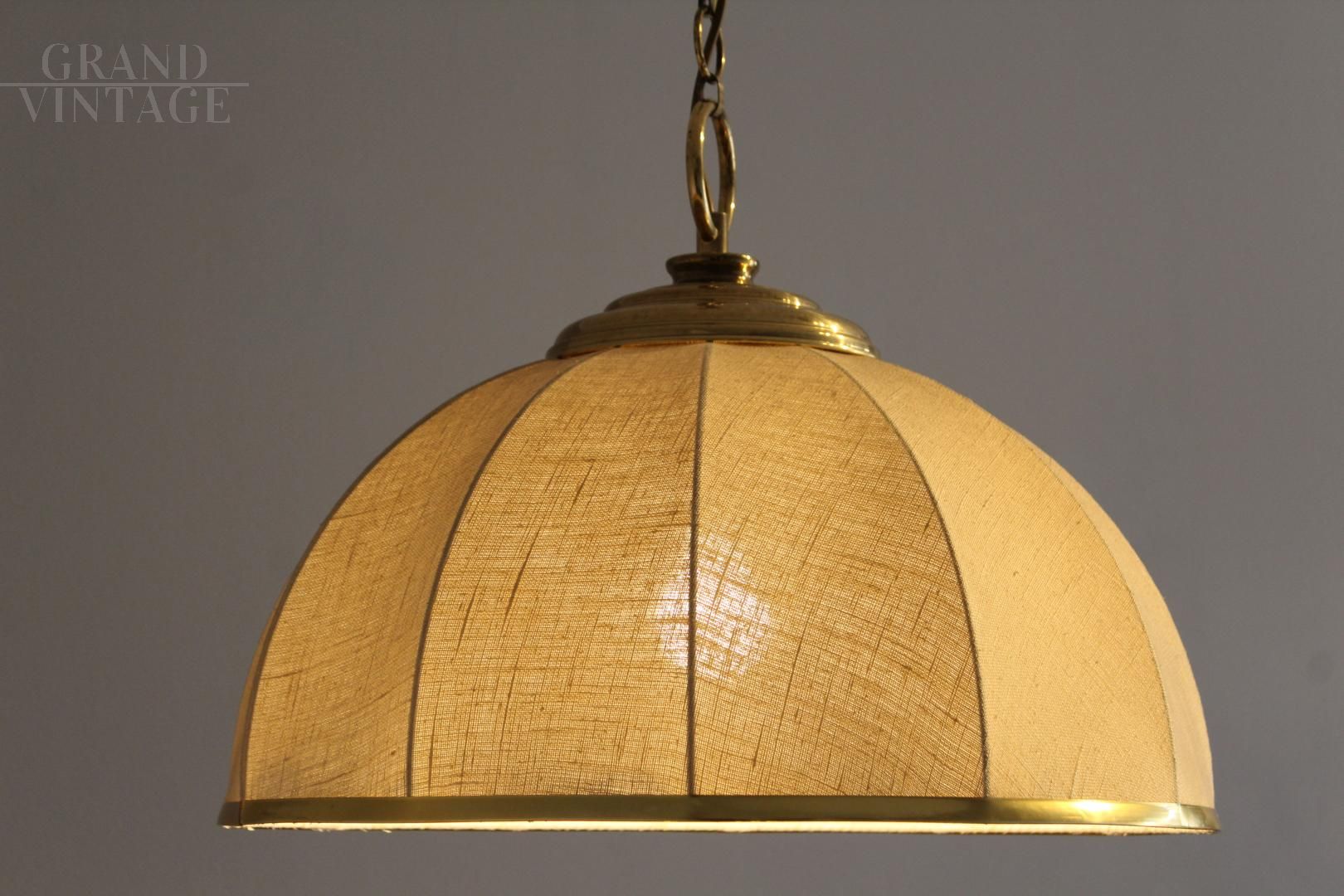 Lampadario anni '70 in stile coloniale, in tela e ottone