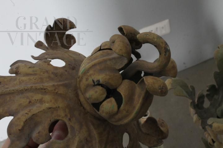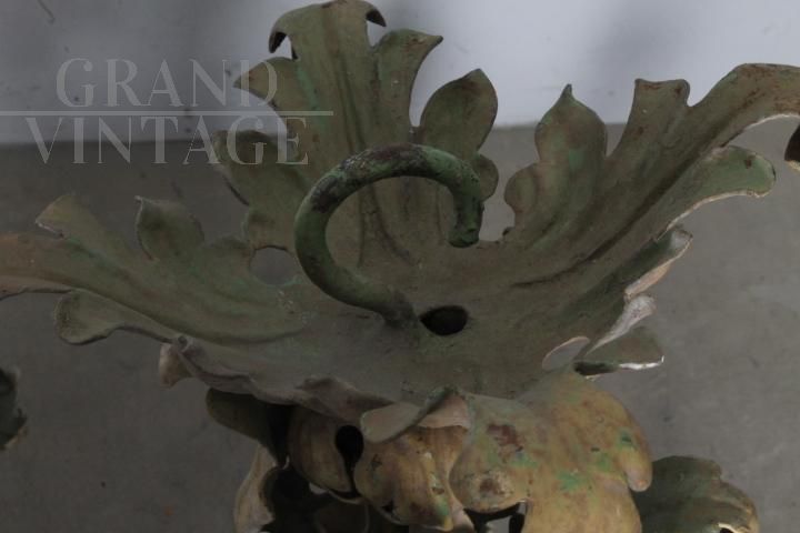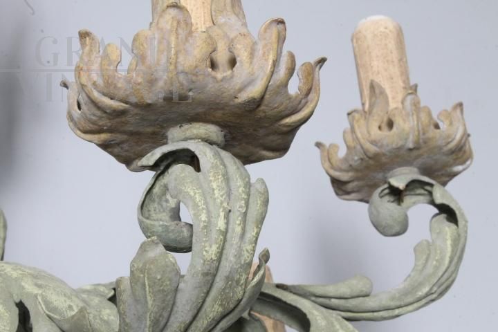 Lampadario antico in ferro battuto dipinto con 8 luci, fine '800