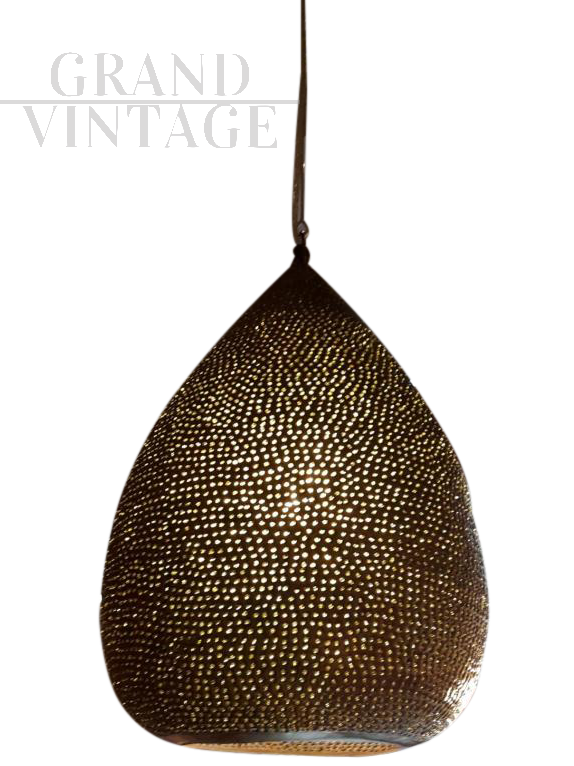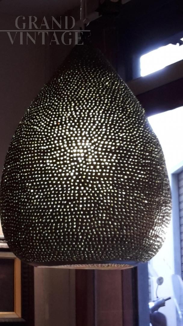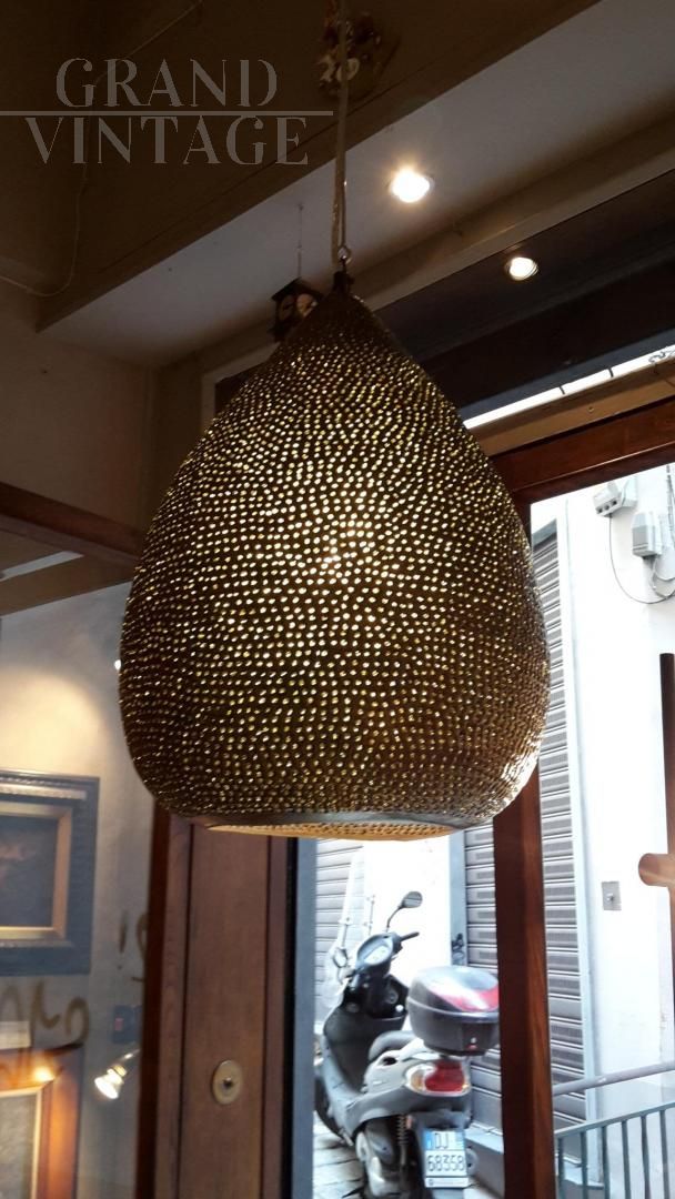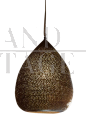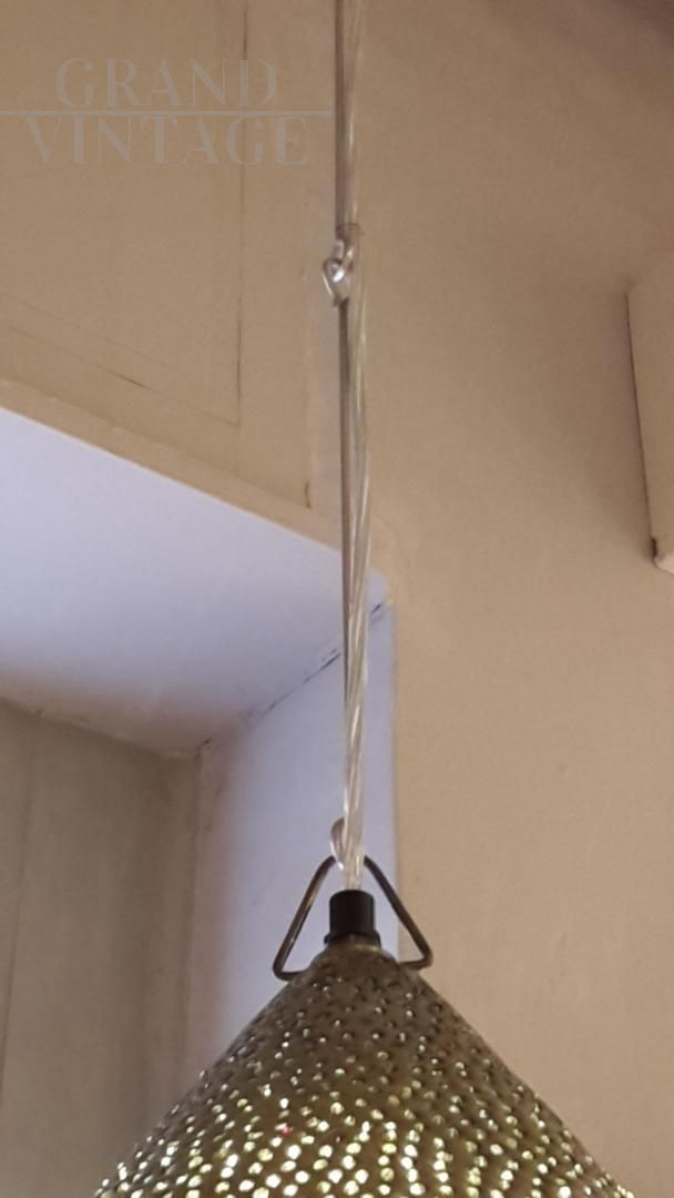 Lampada da soffitto italiana in rame con inclusioni di vetri multicolor. Anni '50, buonissime condizioni, impianto elettrico controllato.
