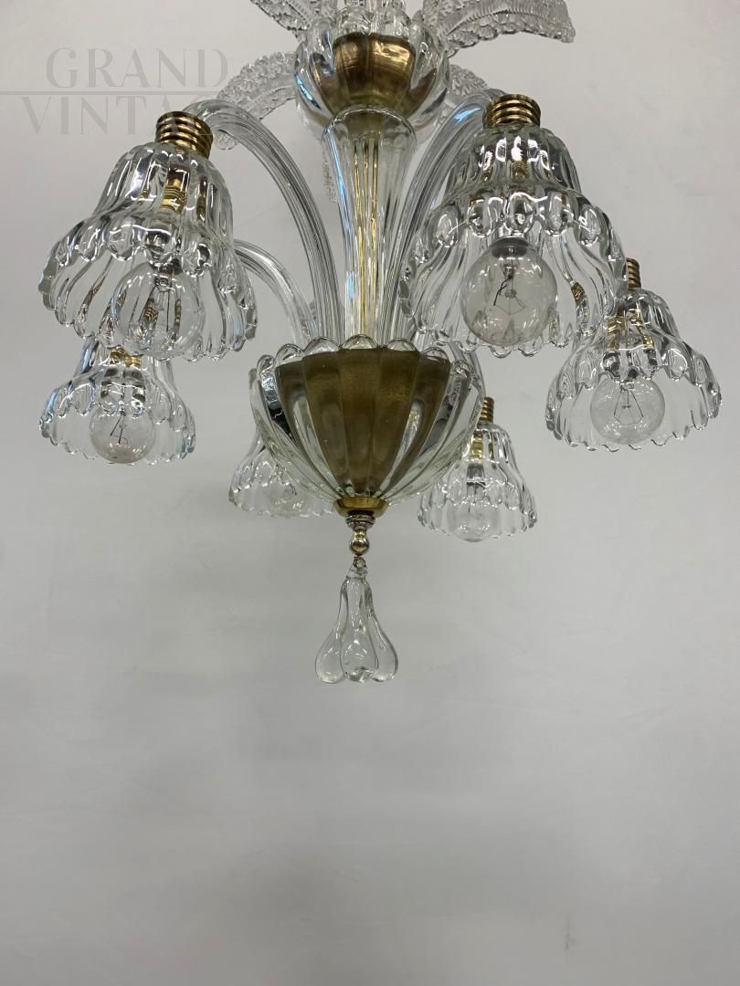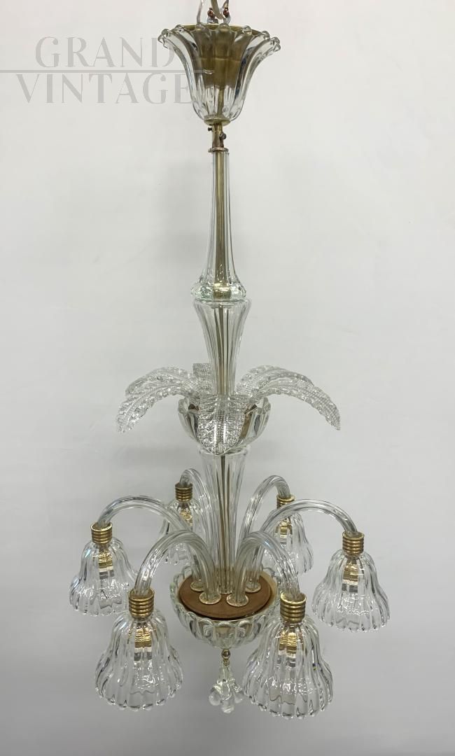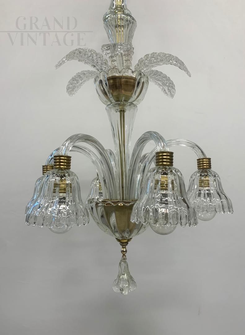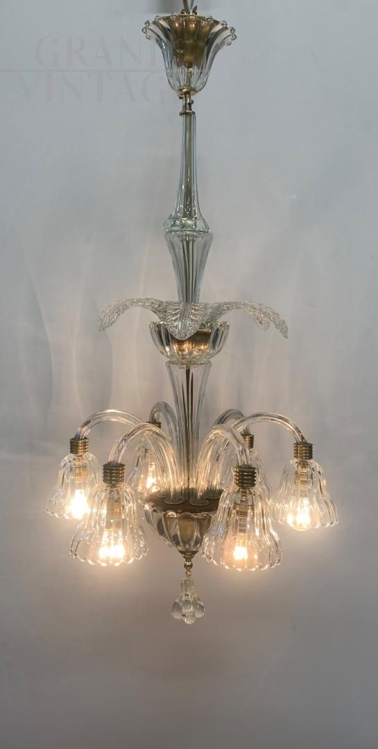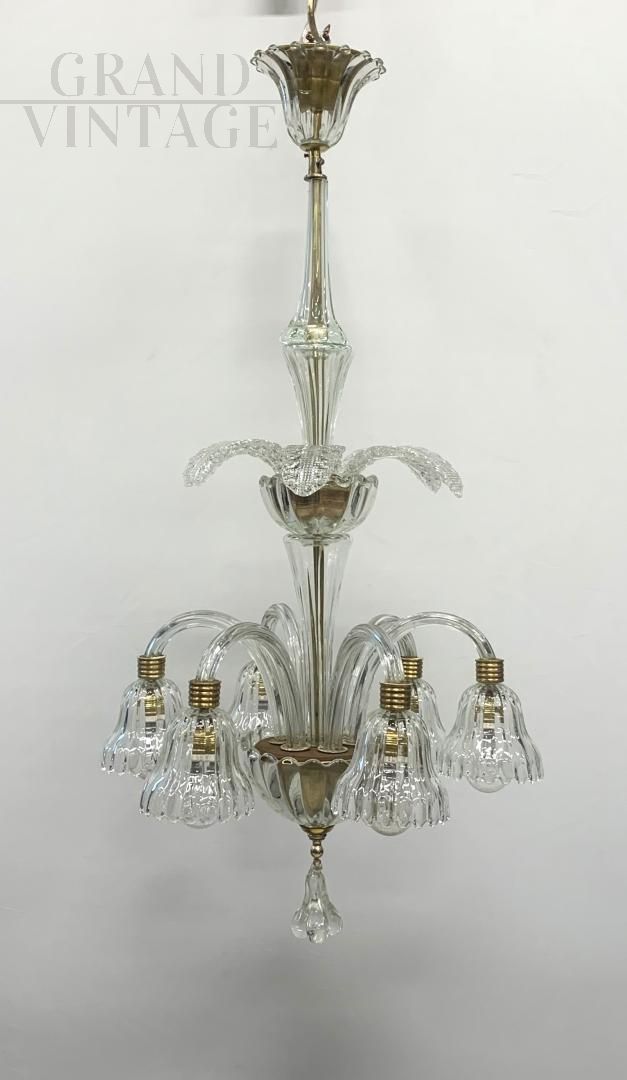 Lampadario attribuito a Seguso anni '50 in vetro di Murano con 6 luci