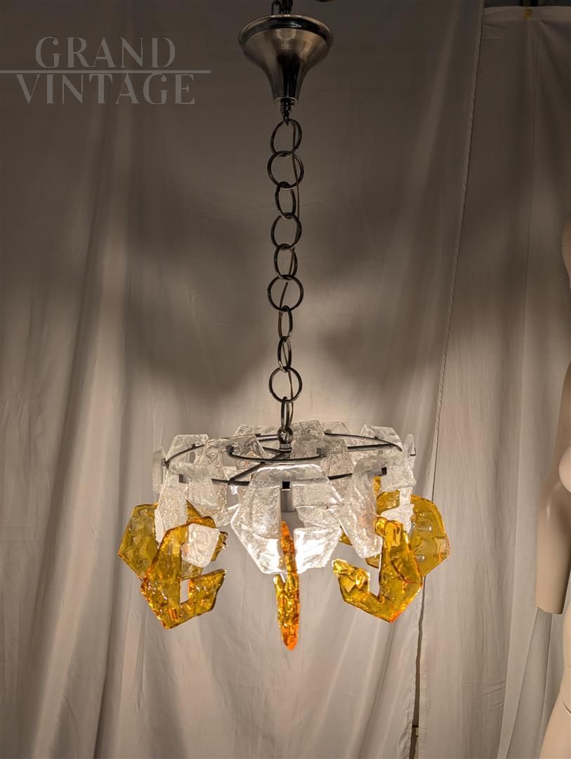 Lampadario con steli in vetro di Murano trasparente e ambrato, anni '70