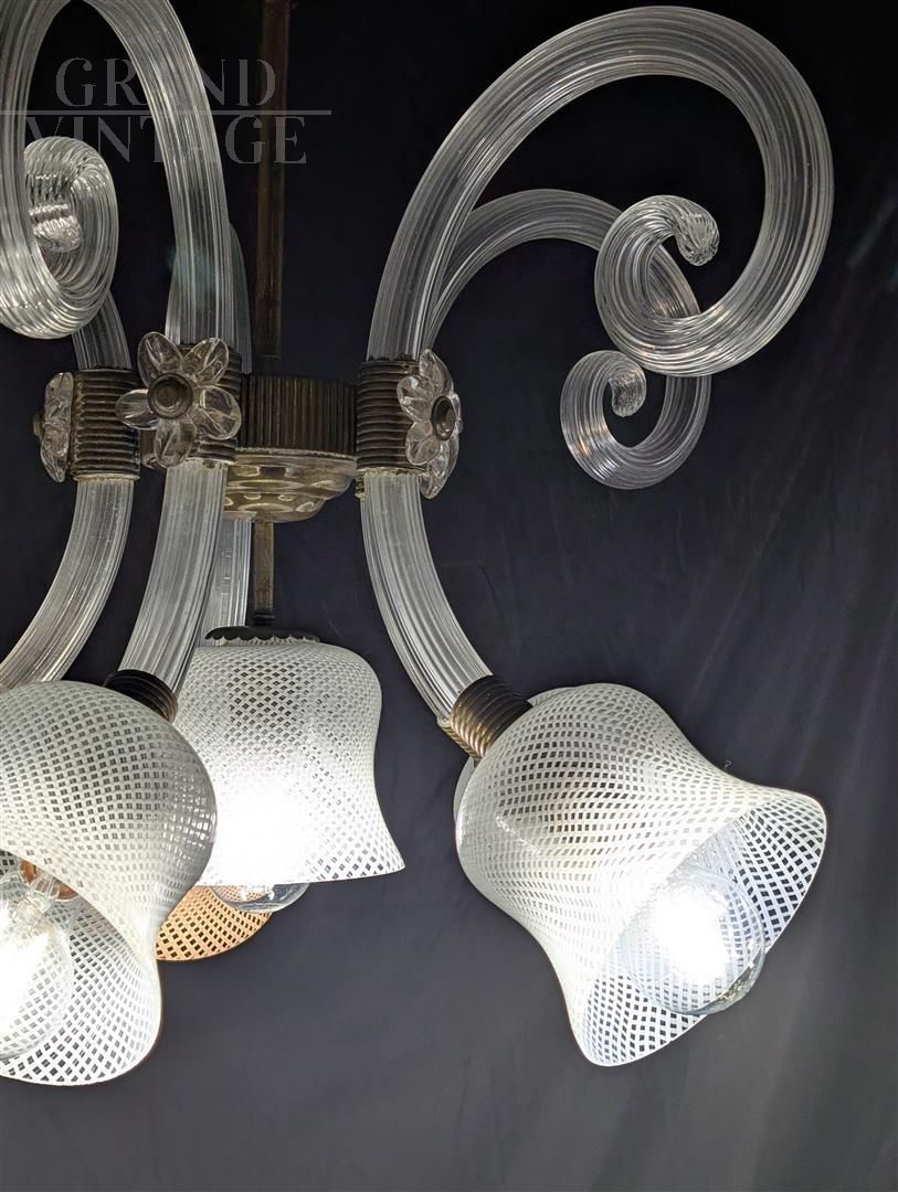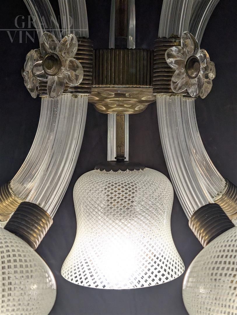 Lampadario da soffitto Barovier e Toso in vetro di Murano, anni '40