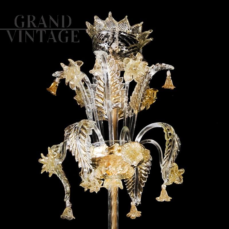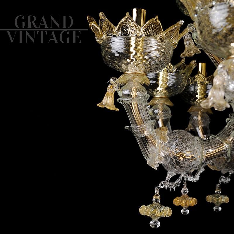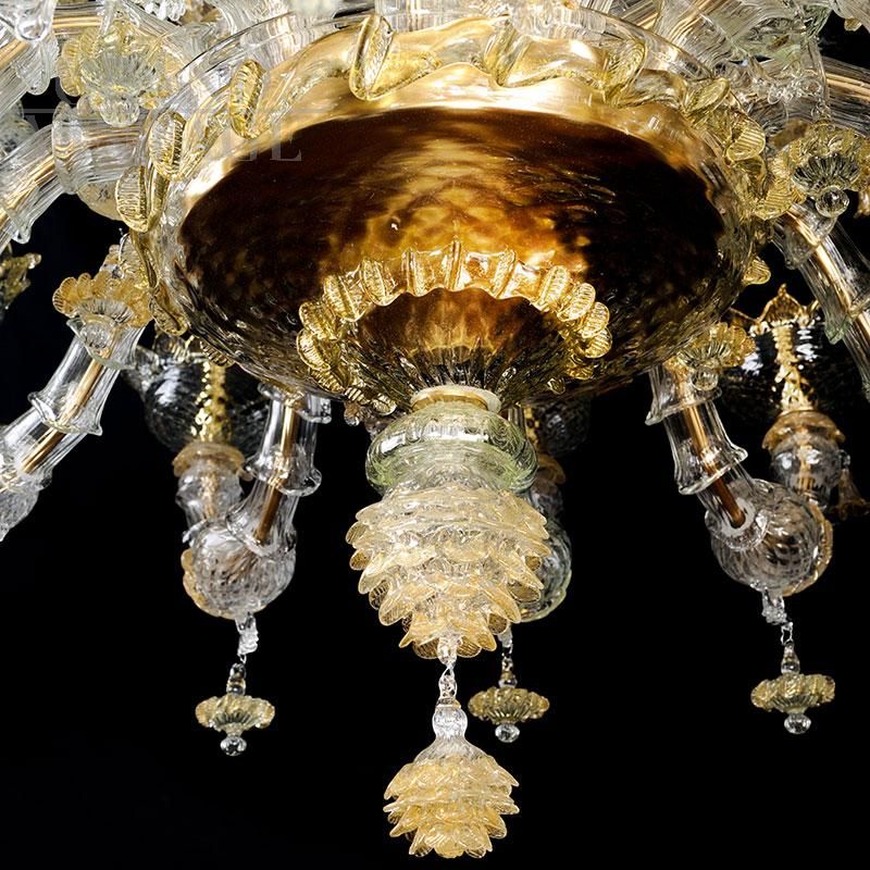 Lampadario in stile Rezzonico in vetro di Murano cristallo dorato